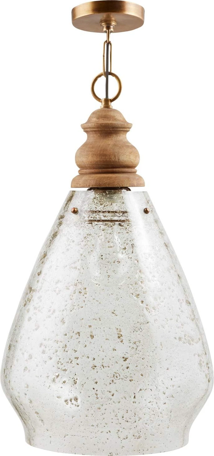 Juniper 1-Light Seeded Glass Pendant with Wood Accent - 25" H x 14" W