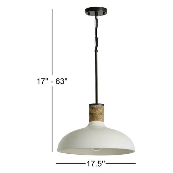 This artisan-made, wide dome-shaped 1-light pendant is handcrafted with a finish inside and out. The hand-wrapped natural jute rope detail adds a layer of interest to a simple, yet sophisticated style.