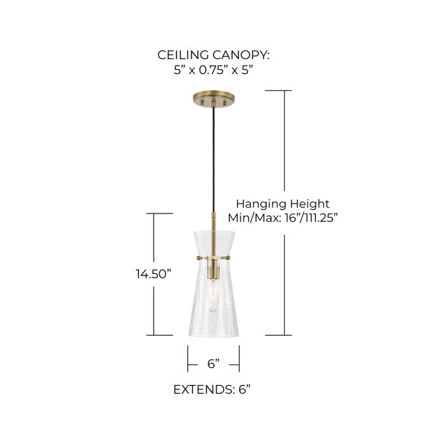 The unique half-crackle detail on this 1-Light Pendant in Aged Brass has a visual texture that beautifully complements the tapered silhouette.