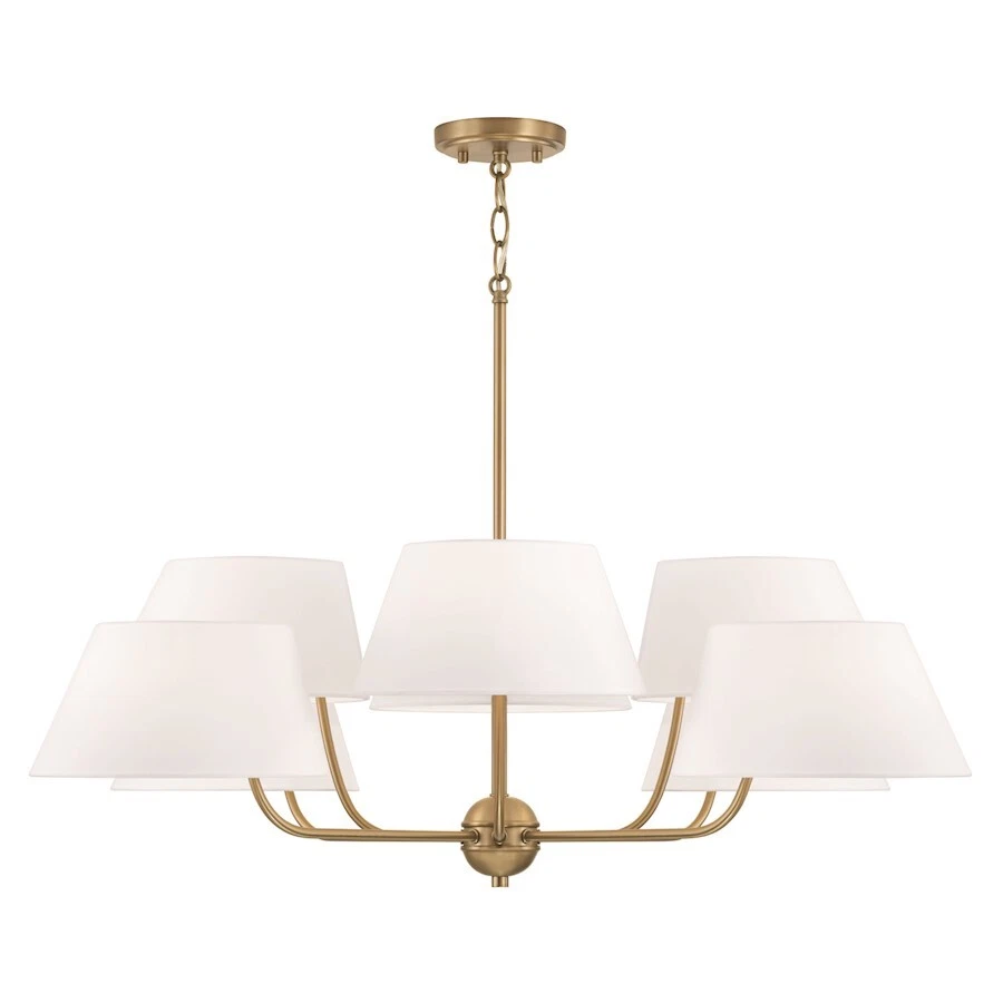 Capital Lighting Welsley 8 Light Chandelier, Brass/White - 450481AD