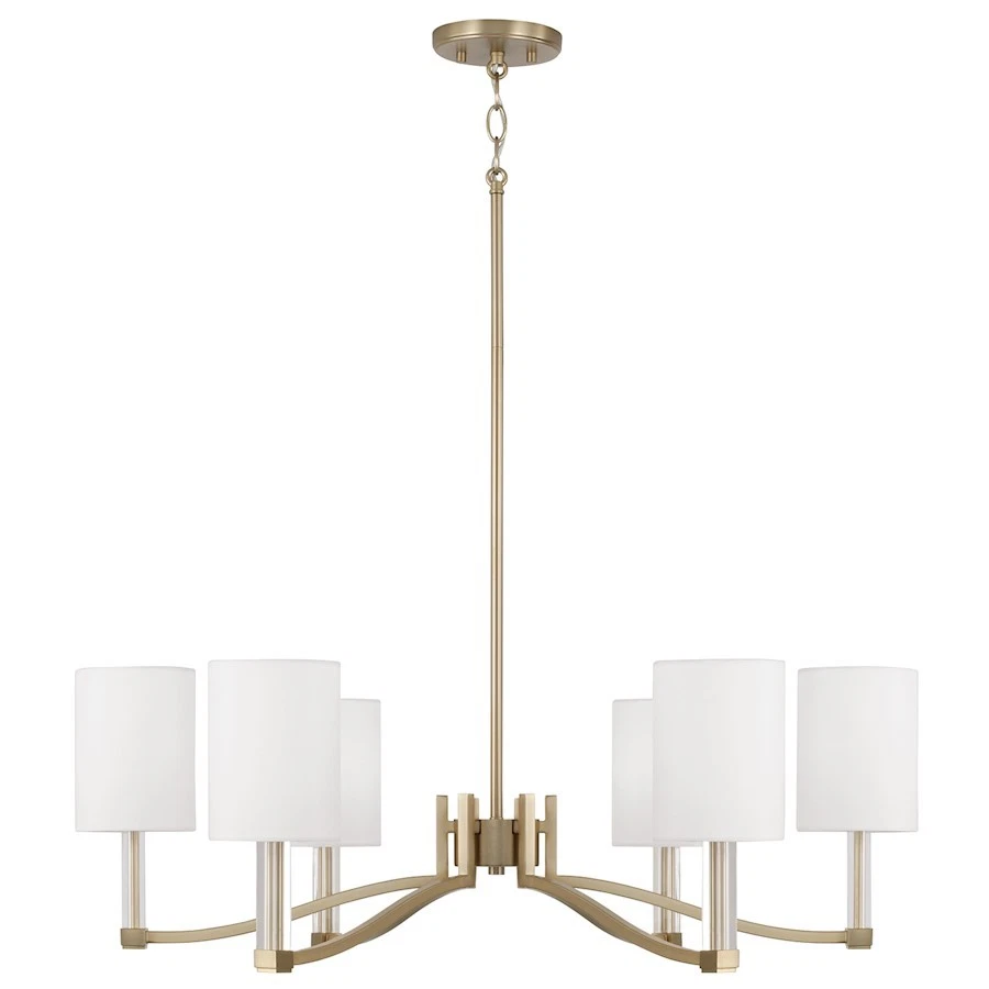 Capital Lighting Ingrid 6Lt Chandelier, Brass/White Fabric Shade - 457061MA-715