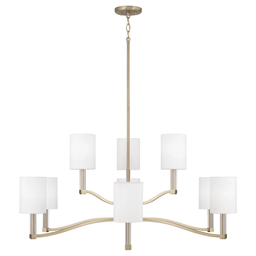 Capital Lighting Ingrid 9Lt Chandelier, Brass/White Fabric Shade - 457091MA-715