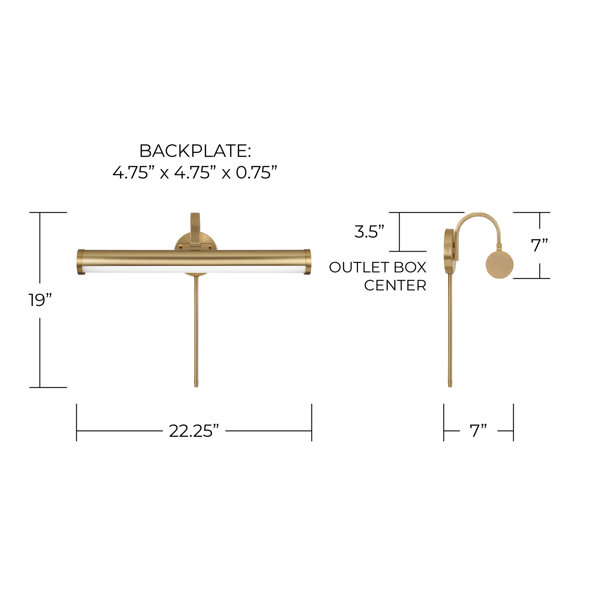 DETAILS: Complete with a pivoting arm and shade, the sleek, cylindrical silhouette brings chic style with integrated LED technology and an Aged Brass finish. Plug-in optional with 12 cord cover and switch on wire.