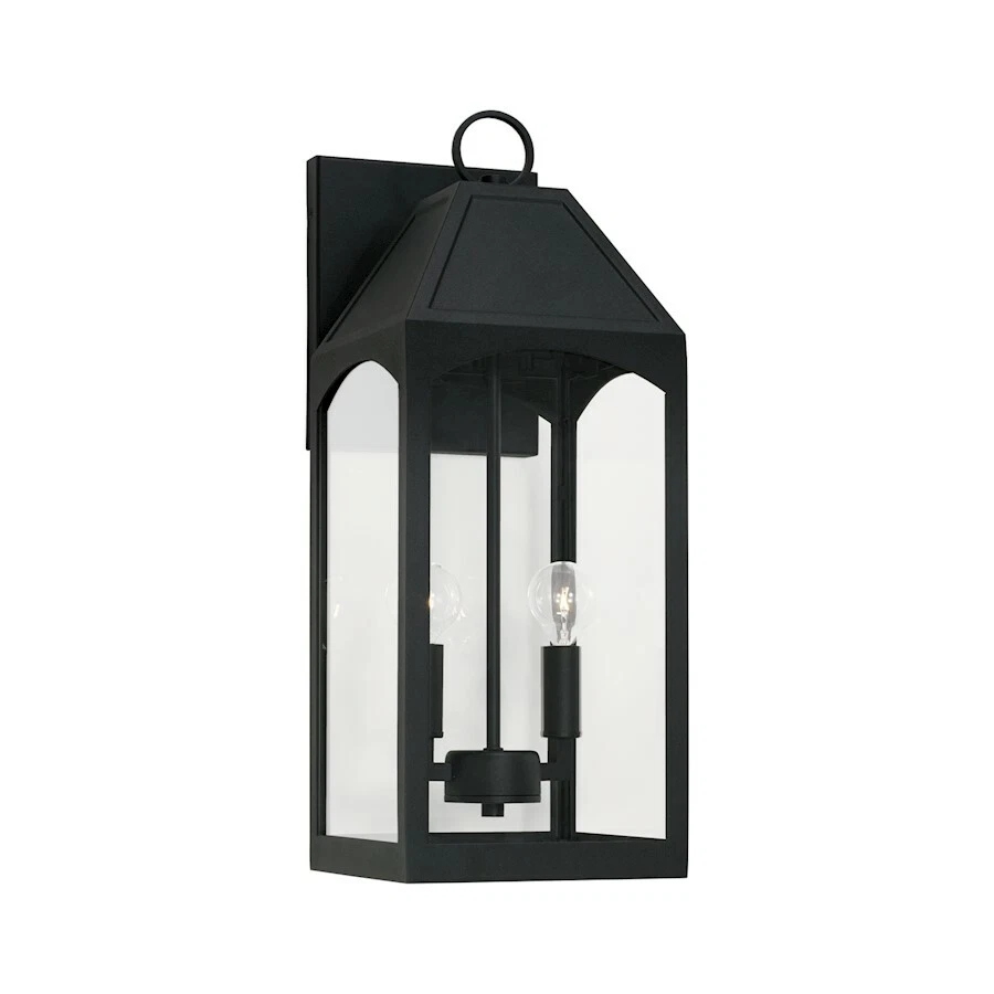 Capital Lighting Burton 2 Light Outdoor Wall Lantern, Black/Clear - 946321BK