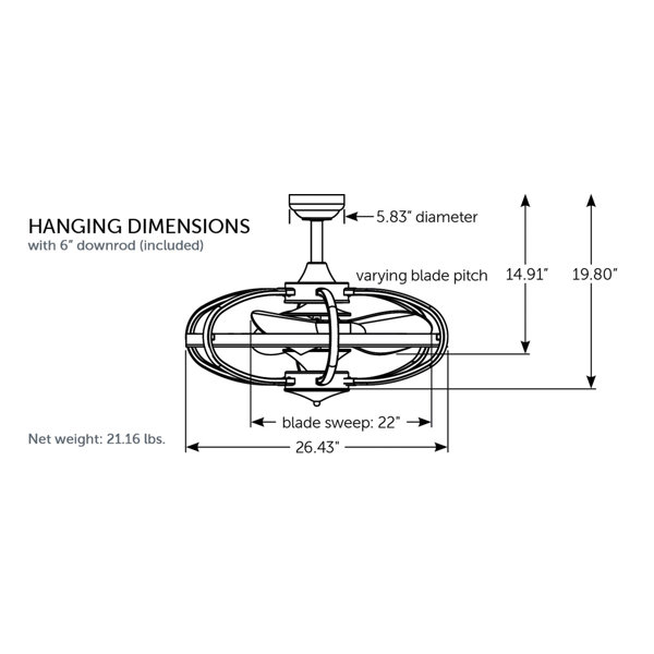 INSTALLATION: Mounts to flat or minimally sloped ceilings with the included 1-in diameter x 6-in length downrod - Optional downrods are available in lengths up to 72 inches to adjust the fans height to 7ft - 9ft from the floor, ensuring maximum airflow