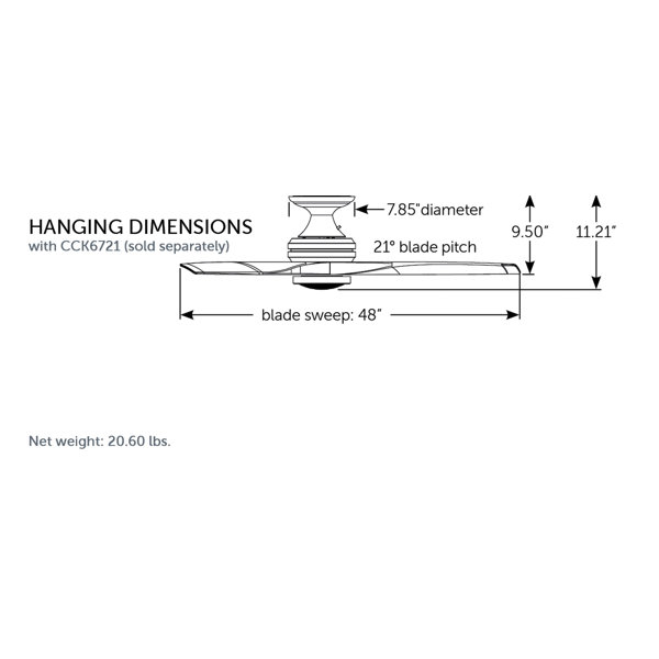 OPTIONS: Available in multiple finishes and 48-inch or 60-inch blade sweeps