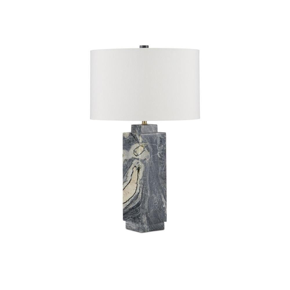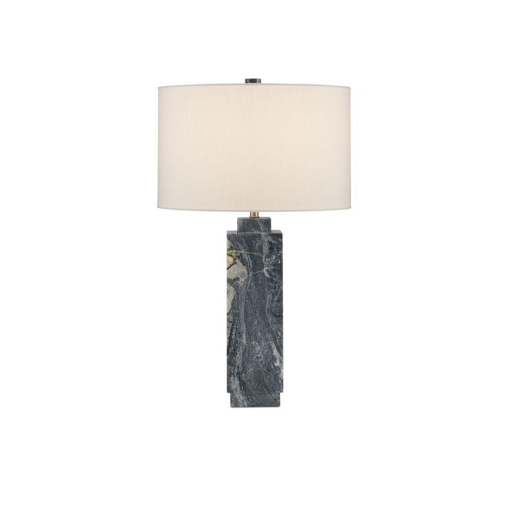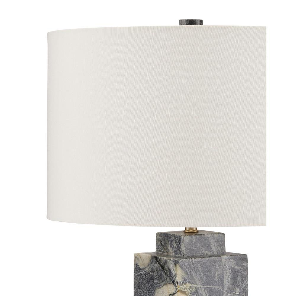 The Ashlar Jade Marble Table Lamp showcases one of mother nature's works of art. Made of Floral Jade Marble, the gray lamp was designed by Ian Thornton, who kept the shape simple to allow the material to be the star of the show. "I love how the material looks," Ian said. "It's new to the lineup, which makes it even more exciting." The character in the stone from piece to piece will vary, which makes each lamp unique. The Ashlar is topped with an off-white shantung shade and the hardware is in a brass finish.