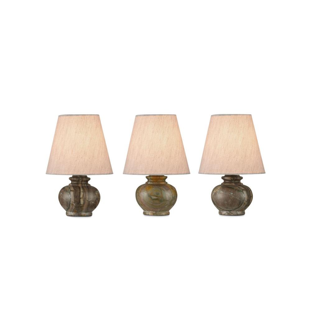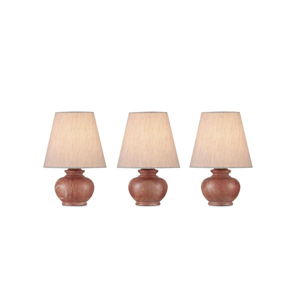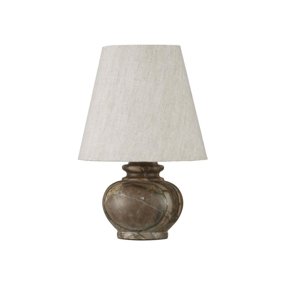 The Piccolo Pistachio Mini Table Lamp is a petite accent piece crafted from Pistachio Green marble that features soft pink tones and natural veining to make each lamp unique. Inspired by a vintage design, it stands just 4.5 inches high to the bottom of the off-white linen shade, making it perfect for tucking into bookcases, shelving, or layered decorative vignettes.