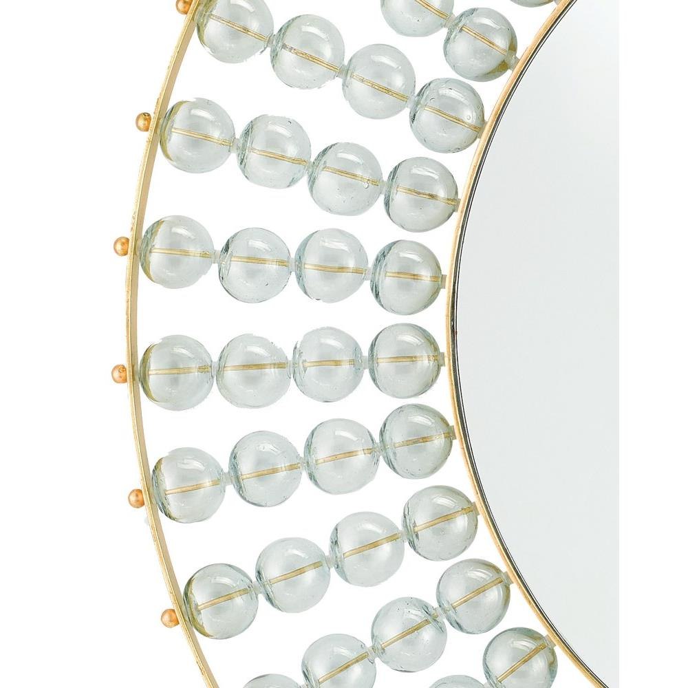Our Calais Mirror was named for a town that is known for its lace, which makes the open-weave artistry we have achieved on this decorative mirror a fitting tribute. Threaded between the metal rings in a gold leaf finish, the hollow recycled glass balls make this glass mirror glint.Metal Cleat for Hanging.