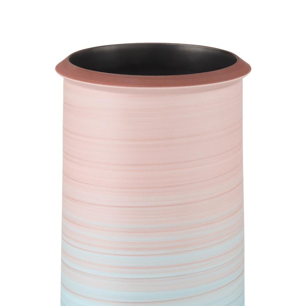 The Happy 80’s Blue & Red Vase Set is a throwback to the decade when bold, vibrant, and eclectic ruled the stylistic spectrum, from interior design to fashion. Made of porcelain, the glazes on the exteriors of these vessels will vary because they are applied while the vases are spinning. This brings the two works of art a textural feel. The insides of the vases are covered in a black glaze, and the nicely fashioned lip surrounding their top-most points echoes the shapes of the bulges below them.