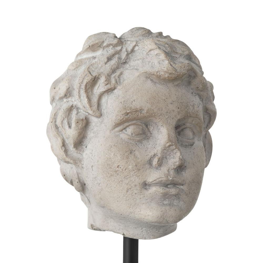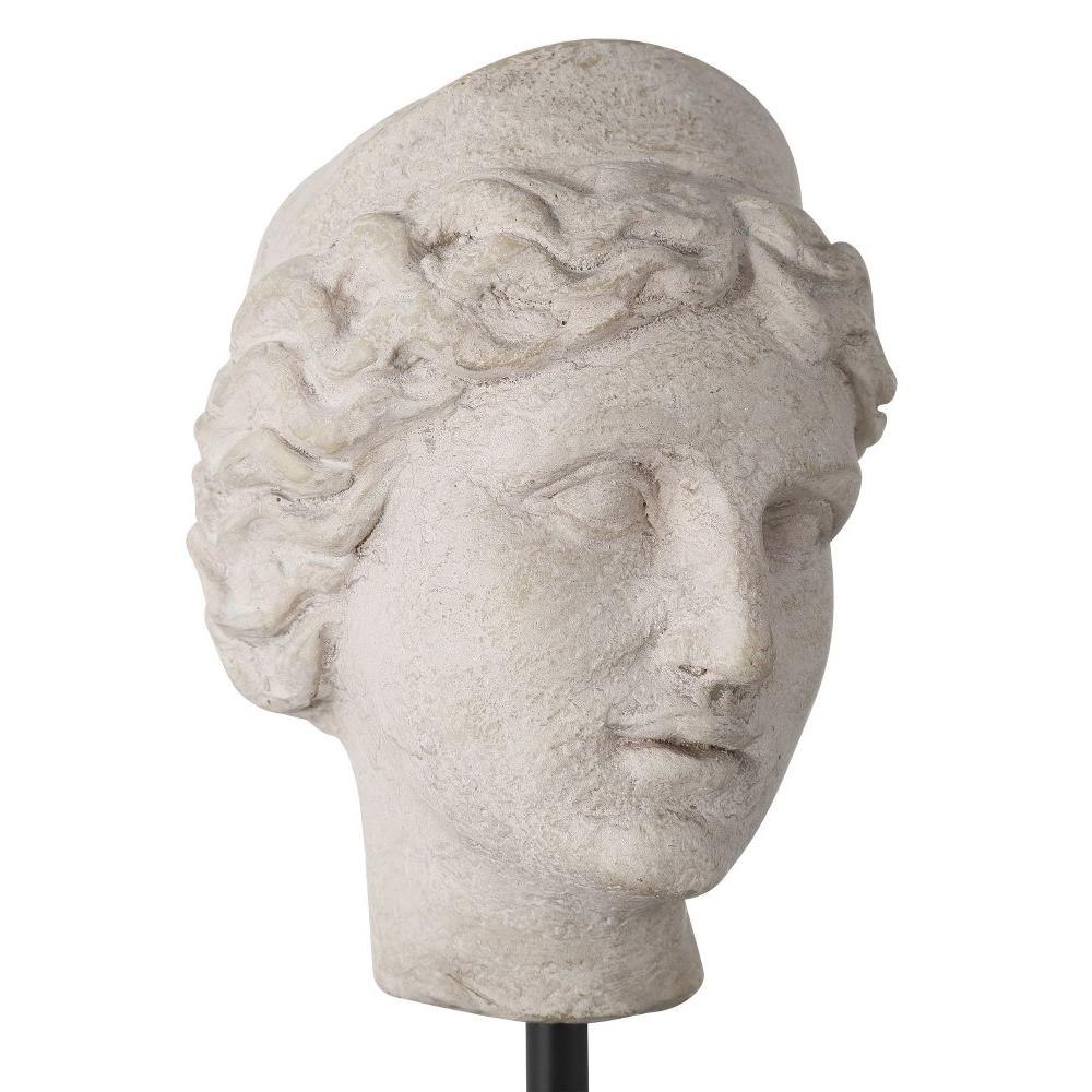 The Venus Head on Stand Set is two sculptures that look as if they were carved from stone ions ago, though they are actually made of composite in an artisanal mix of beige and pale gray finishes. Mounted on blocks of black optic crystal in varying heights, these sculptures look like museum-quality artifacts.