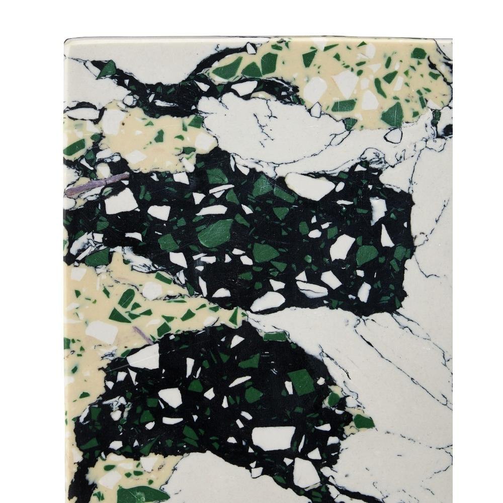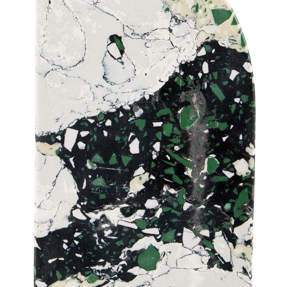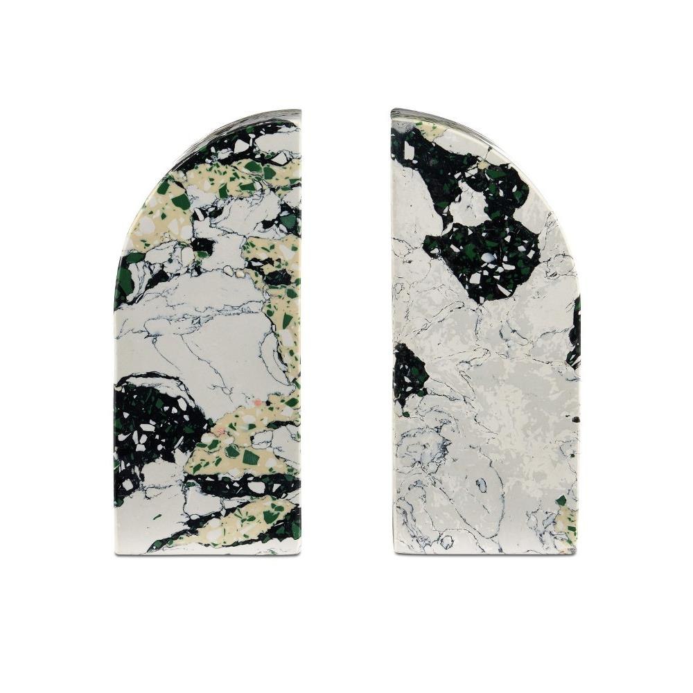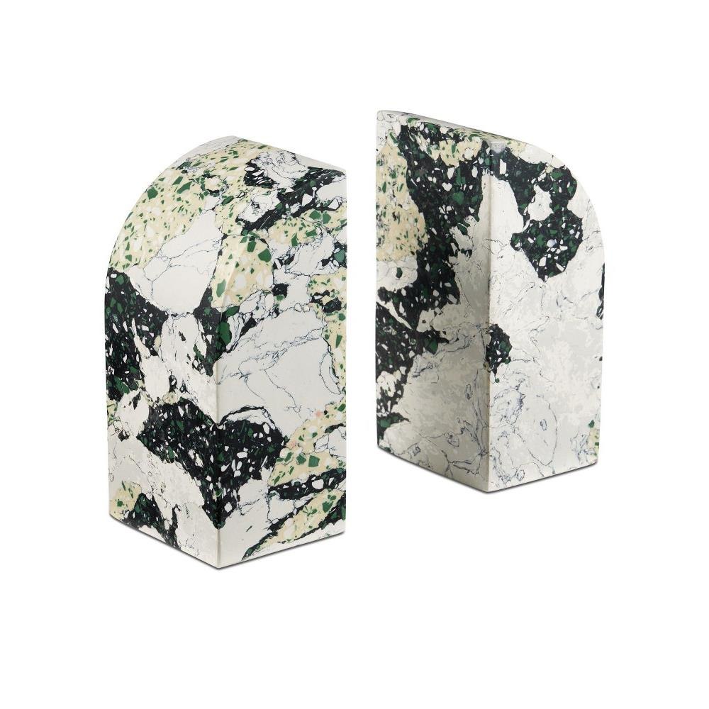 The Fossey Object Set is a pair of scupltures that look like they are made of natural granite, but are actually made of synthetic stone. The black and white decorative accessories with hints of green and pale yellow have swirling personalities that make them textural accents. The one curved edge brings them interesting profiles.