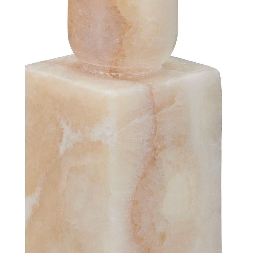 The Lithos Ivory Candle Holder Set includes two candle holders made of a cream onyx. The geometric shapes that compose its profile are enlivened by the natural veining of the stone, making each one unique. The characteristics of this stone bring a warm peachy and cool ivory interplay to their surfaces.