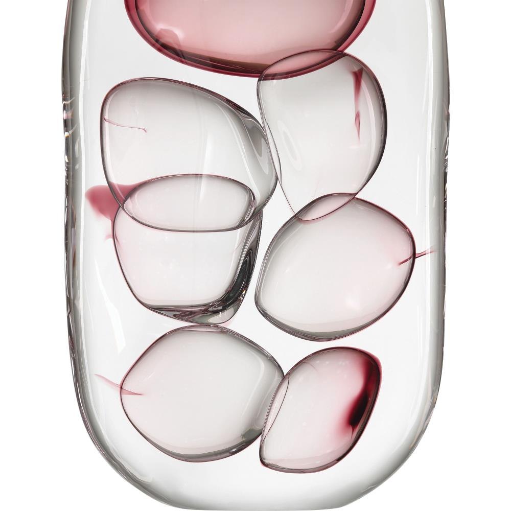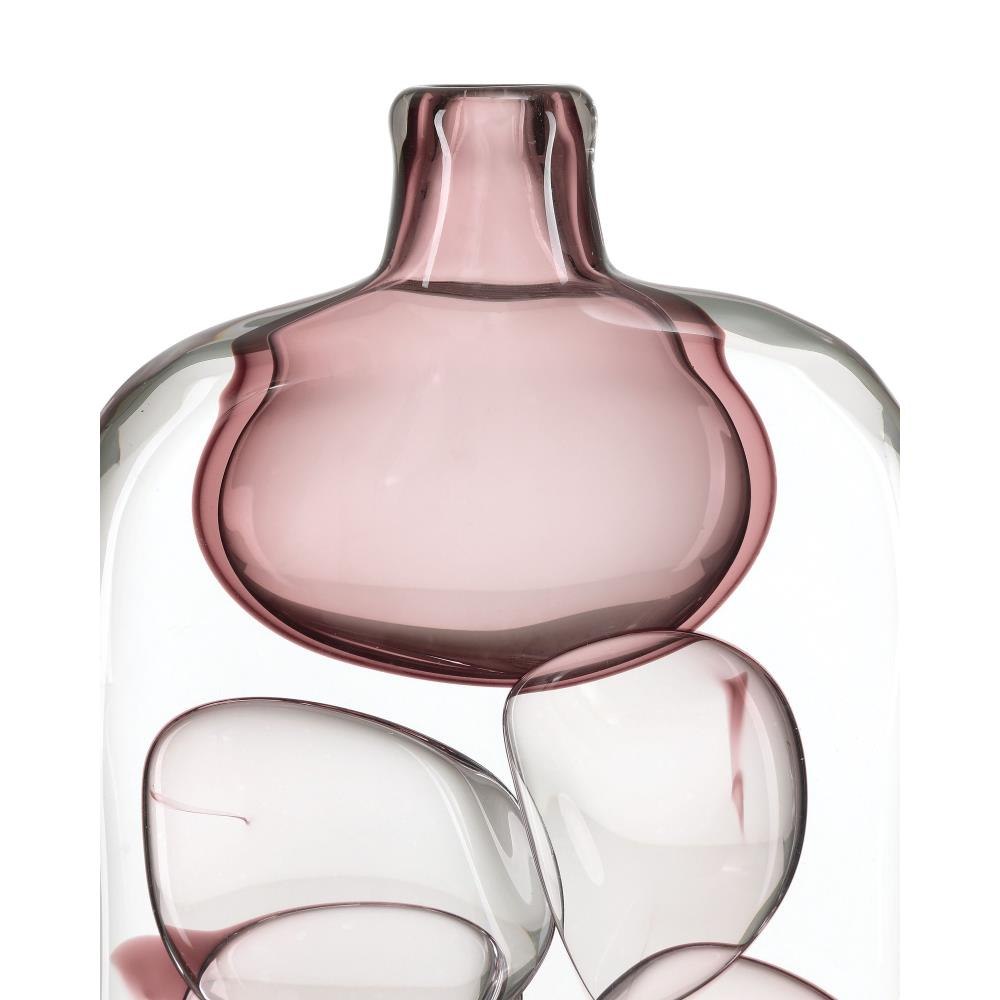 Make a bold statement with the Danielli Large Vase that is expertly crafted from hand-made clear and purple glass. Suspended within its elegant form, organically placed bubbles create a sense of movement and depth, turning light and color into a captivating display. Both sculptural and functional, this vase will make for a striking accent piece in the most sophisticated setting.
