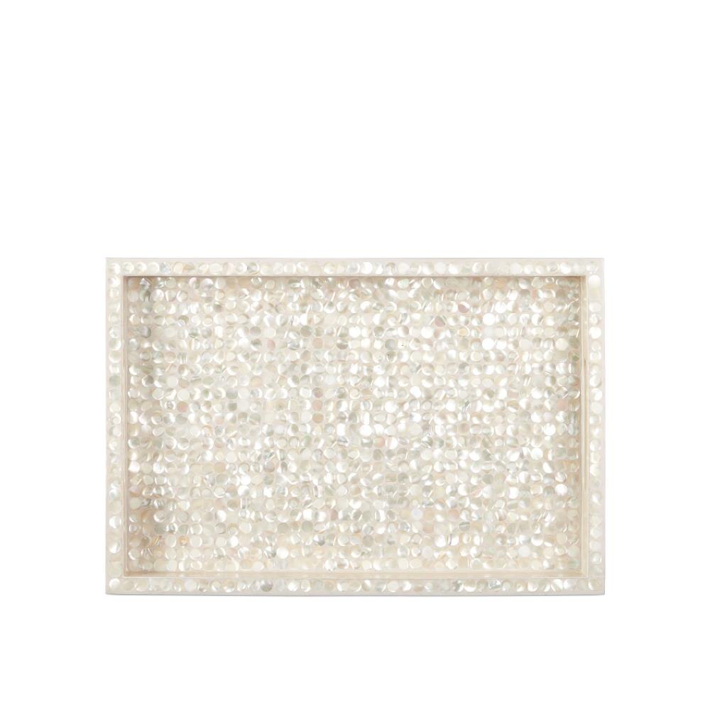The timeless elegance of mother-of-pearl make the Gerri Dot Tray Set a stunning embodiment of masterful artisanship. Clad in the lustrous material, this set includes both a larger and smaller decorative tray, each reflecting light beautifully and adding a touch of sophistication. Perfect for serving, organizing, or displaying cherished items, these trays elevate any setting with their radiant charm and lasting appeal.