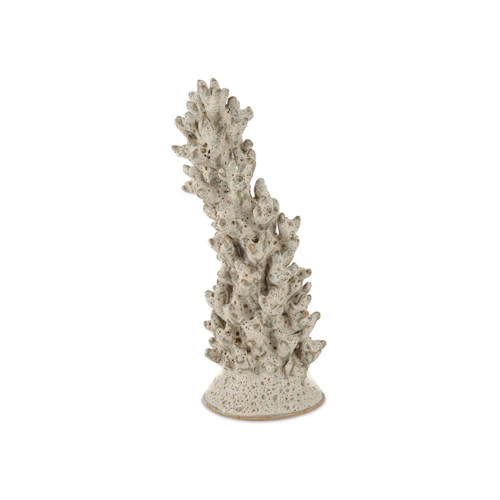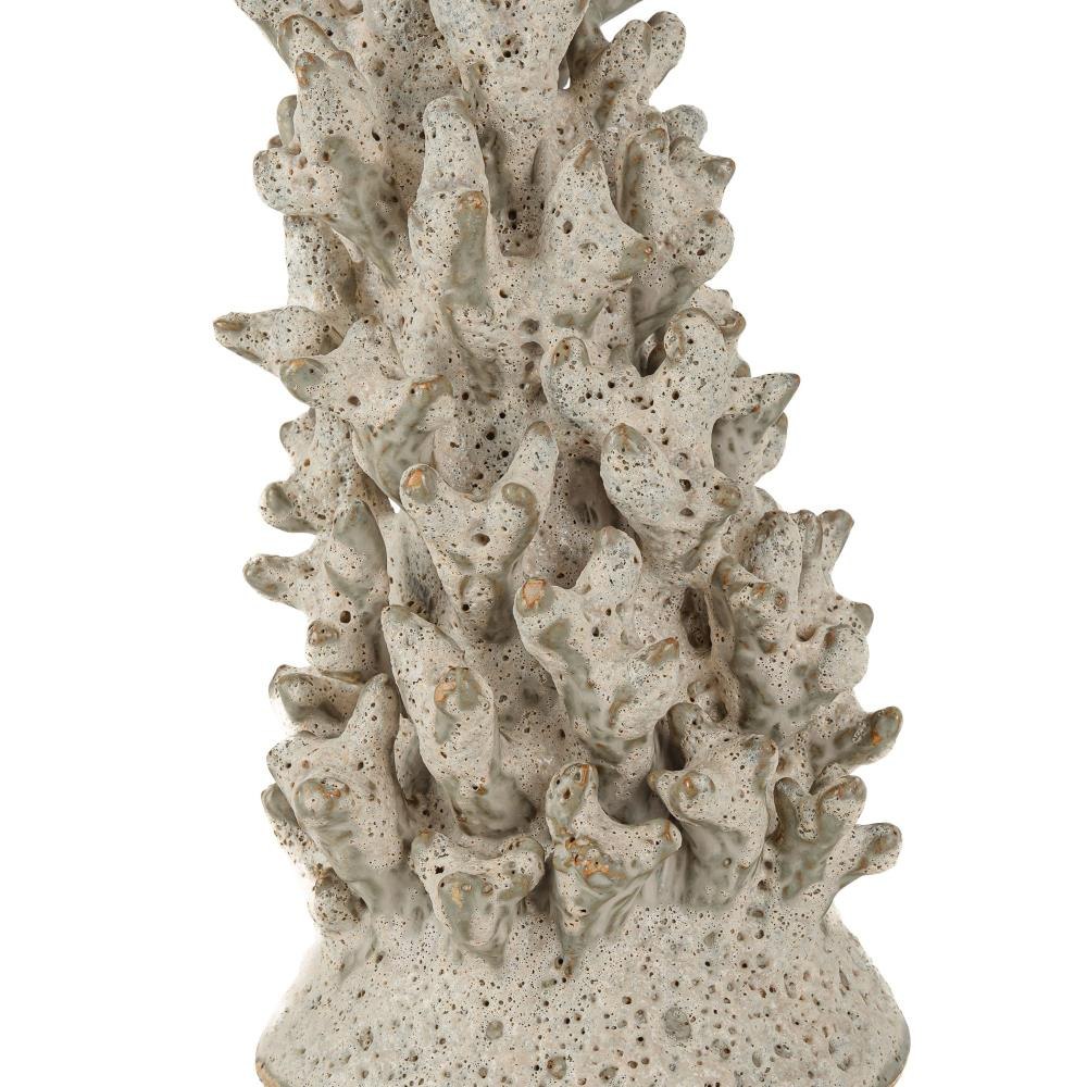 The Staghorn White Coral Object is a striking ceramic sculpture that mimics the natural beauty of stacked coral. Expertly thrown and carved from dark clay ceramic, it has a sunken white moss glaze that enhances its intricate texture and highlights the abundance of pitting across the surface. These combined make the piece read as if it is aged.
