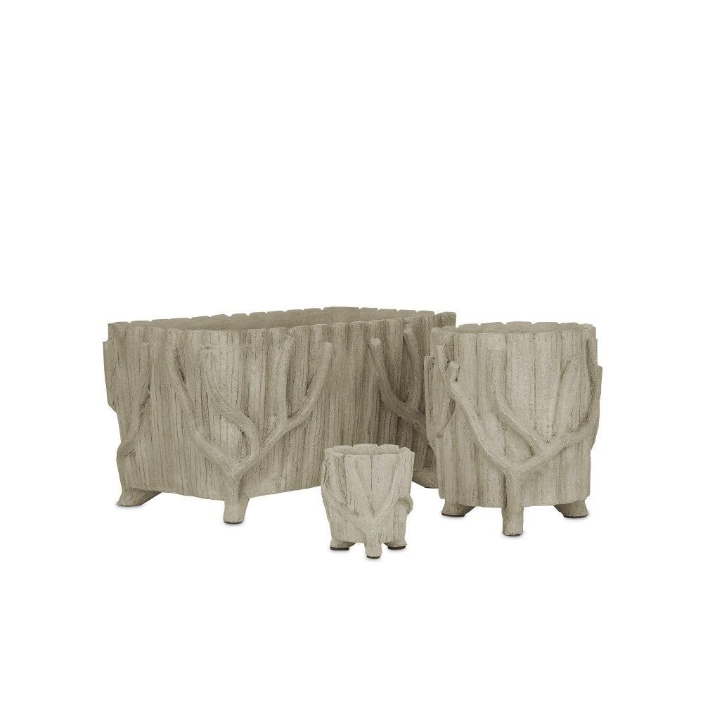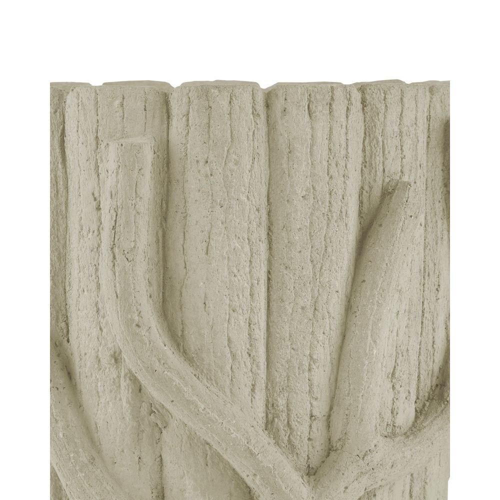 The flowing twig-like details along the ribbed surface of the Medium Faux Bois Planter were hand-applied by artisans who "sculpt" the concrete over a metal frame to look like a rustic faux bois artifact. The Portland finish that settles into the natural crevices enhances the illusion of age that will bring a nice hint of texture to indoor or outdoor settings. Ornamented with tree branches, the concrete planter sprouting with plants will fool the eye into thinking it is a true antique.