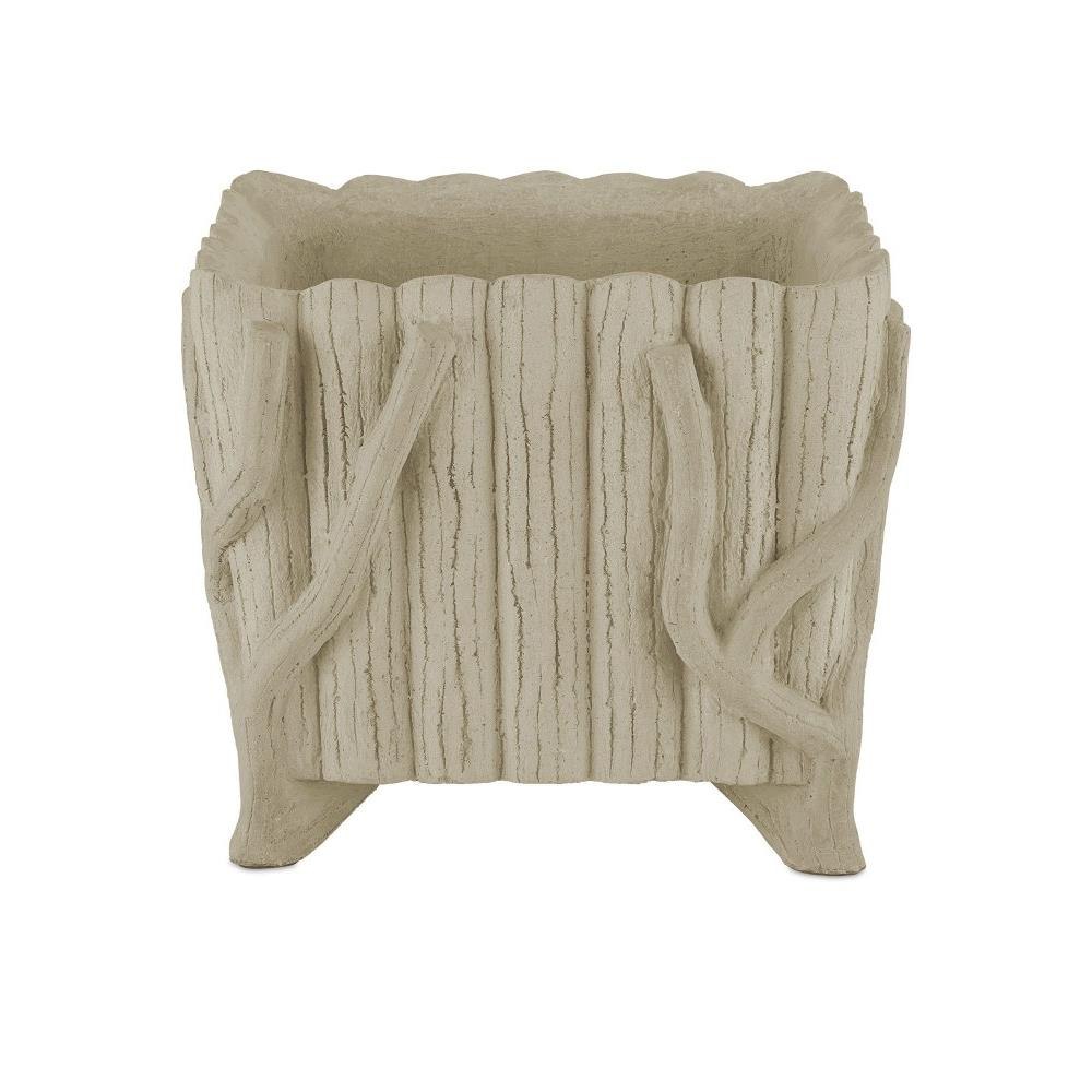 The flowing twig-like details along the ribbed surface of the Square Faux Bois Planter were hand-applied by artisans who “sculpt” the concrete over a metal frame to look like a rustic faux bois artifact. The Portland finish that settles into the natural crevices enhances the illusion of age that will bring a nice hint of texture to indoor or outdoor settings. Ornamented with tree branches, once the concrete planter is sprouting with plants, it will fool the eye into thinking it is a true antique.
