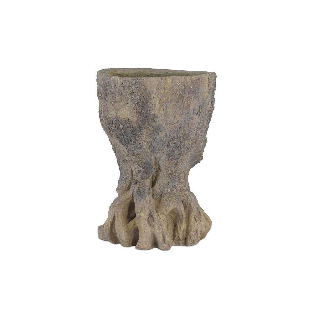 In the tradition of faux bois, the Old Growth Small Planter is incredibly lifelike. Crafted from fiber cement in a dappled finish, the stump-shaped brown planter looks aged like an antique would had it been ornamenting a garden for decades. The way the gnarled roots culminate at the bottom is particularly convincing. This plant pot has a drain hole.