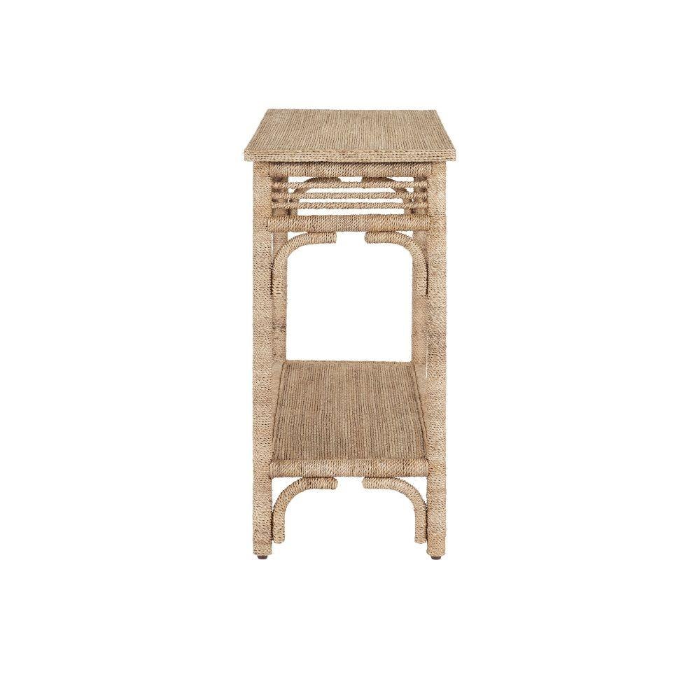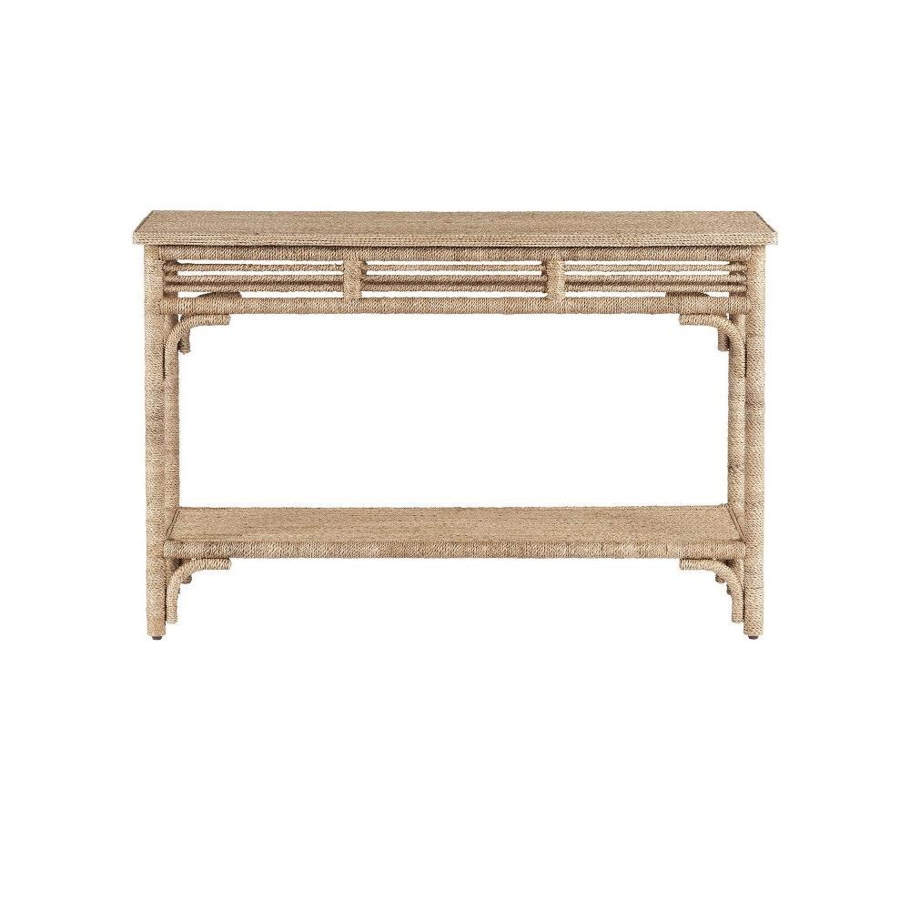 With the earthy feel of rattan and wicker, the Olisa Console Table is covered in braided Abac+í rope to bring a natural elegance to a room. The dexterity required to wrap a piece of furniture so skillfully makes this tan console table special. We offer a number of pieces in this family of products.Hand-Wrapped Rope, 1 Fixed Shelf, Adjustable Glides, Anti-Tip Kit.