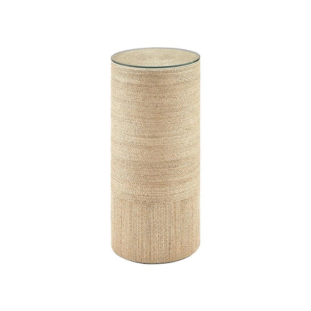 Wrapped in natural rope, the Macati Accent Table/Pedestal is made of wood and topped with a disc of glass. The artistry required to create such a cohesive flow of rope on a piece such as this takes our artisans a great deal of time to master. The rope pedestal has an implied base when the direction of the rope goes from horizontal to vertical. We offer the Macati in a taller version.Foam Bottom.