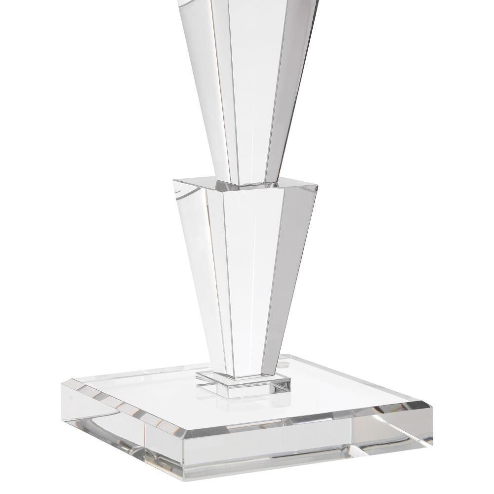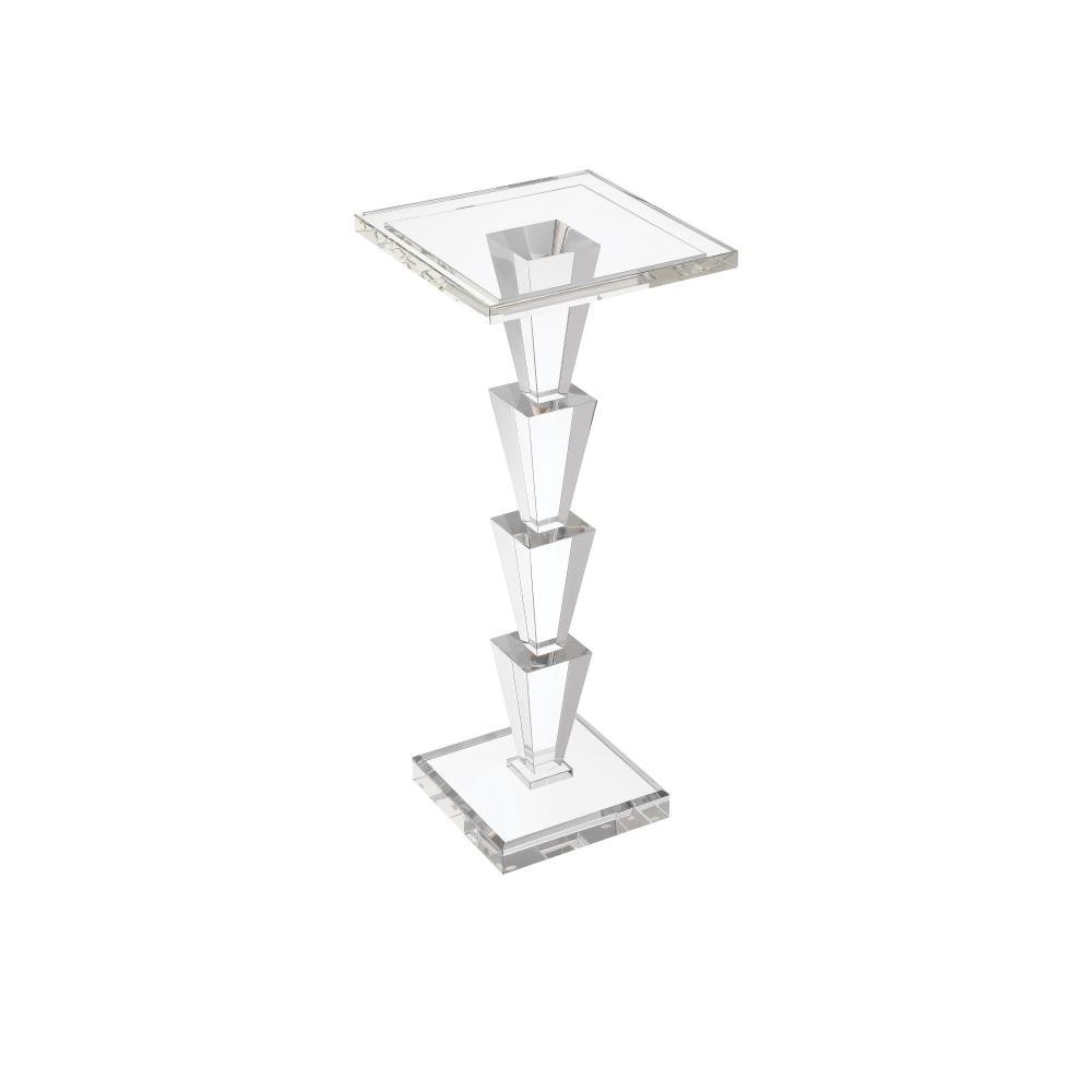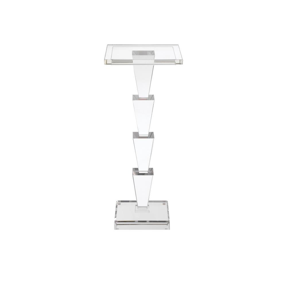 The Tiana Drinks Table is a striking display of geometric elegance that features six stacked optic crystal forms that telescope toward the top. The clean, clear design has chamfered edges on both the stacked base and the tabletop that create a seamless transition between the elements. With its luminous clarity and refined craftsmanship, this table is an ideal accent for a glamorous living space or an upscale entertaining area.
