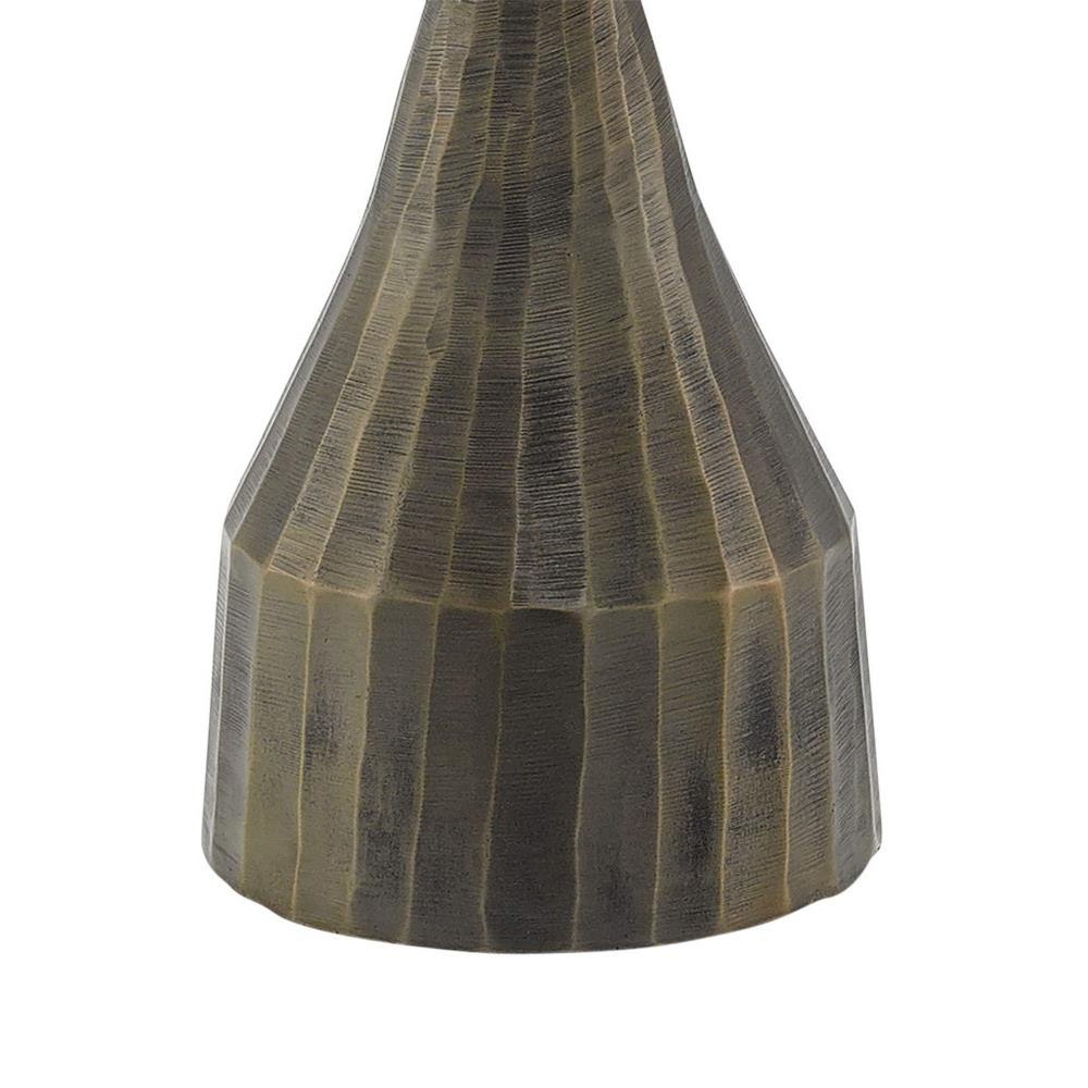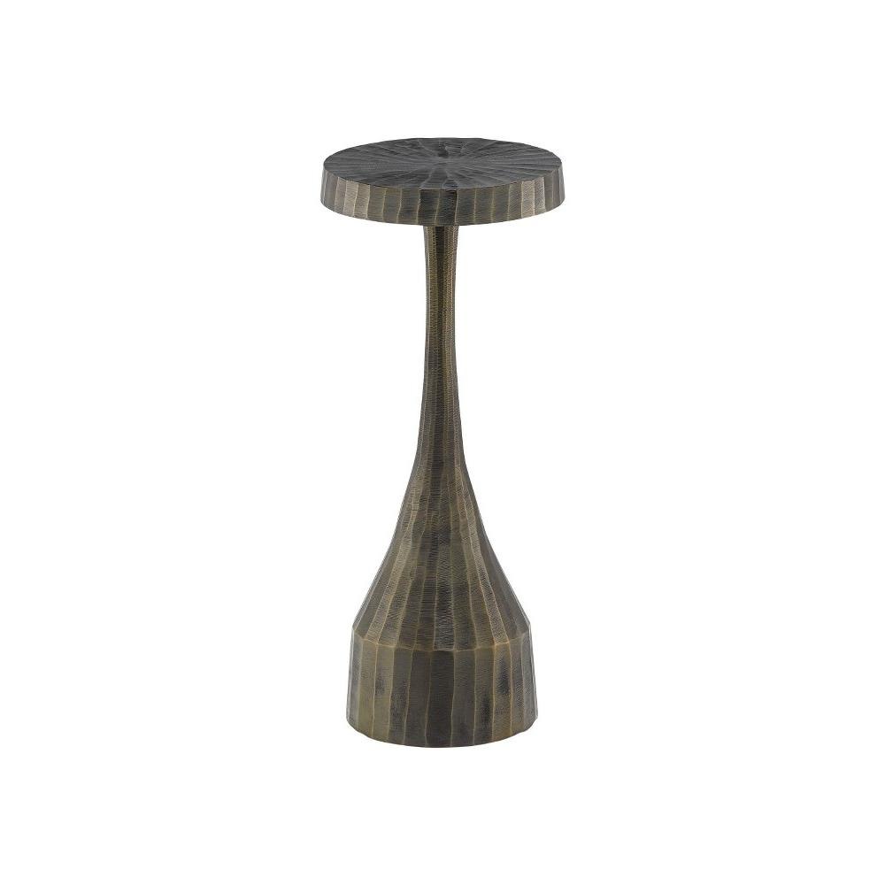 The Luca Drinks Table has not been hewn from a log as its surface implies from far away; the brown drinks table is made of cast aluminum. The delineations on the exterior from wire brushing add extra sheen to the vintage brass finish when light strikes its surface. We also offer the Luca as small and large silver trays.Rubber Feat.