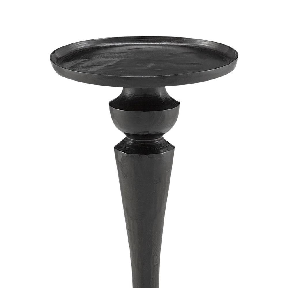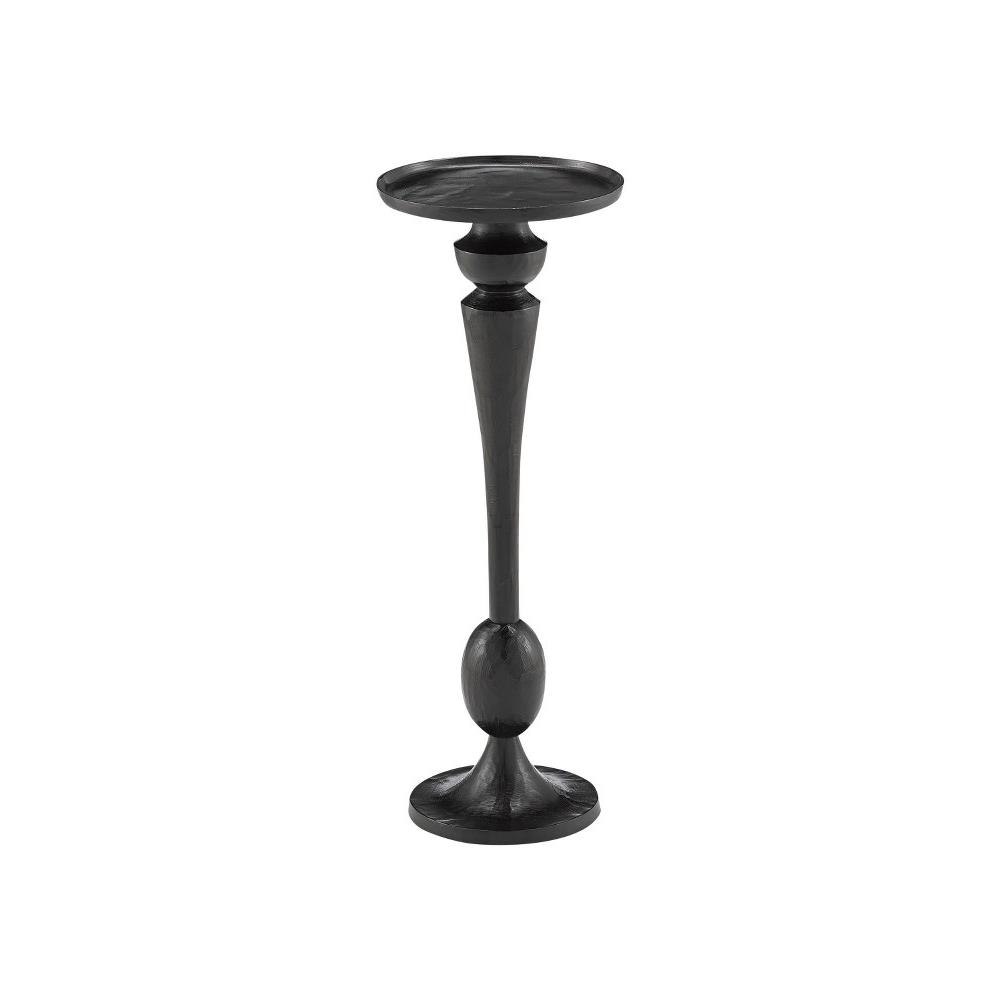 The shape of the Talia Champagne Drinks Table is a riff on turned wood candle-sticks, but this pale gold drinks table is made of cast aluminum in a champagne gold finish. We also offer the Talia in a bronze drinks table and a champagne accent table.Foam Bottom.