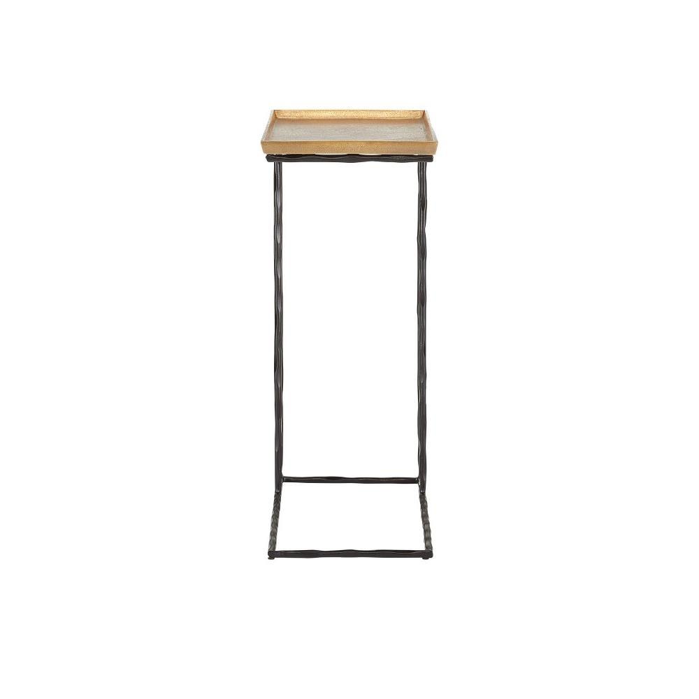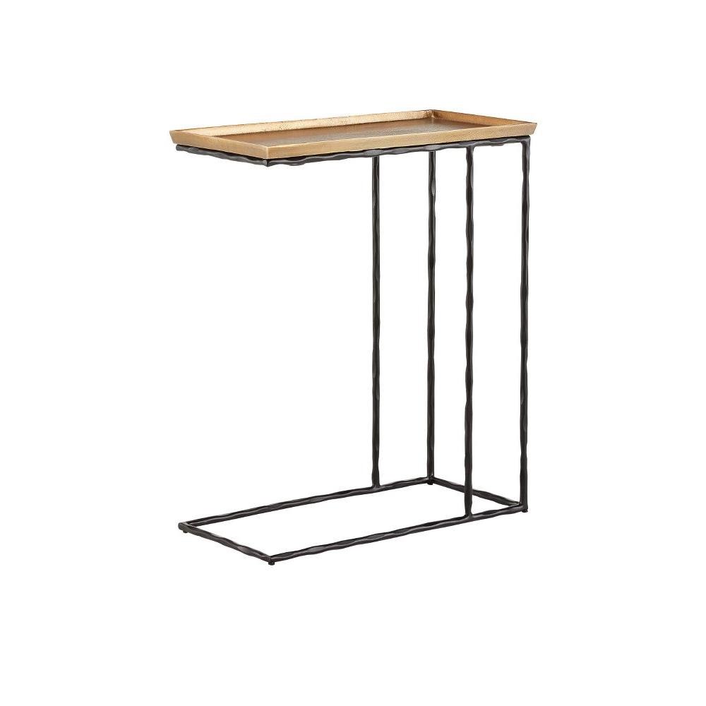 The Boyles Brass C Table has a profile that is so handsome you may think twice about disturbing its good looks with accessories. The simple iron base in a black forged finish lifts an aluminum tray-like top in antique brass. This cantilevered side table is an expressive feature for any spot where a personality-packed table is needed. There are a number of products in an array of finishes in our Boyles offerings.