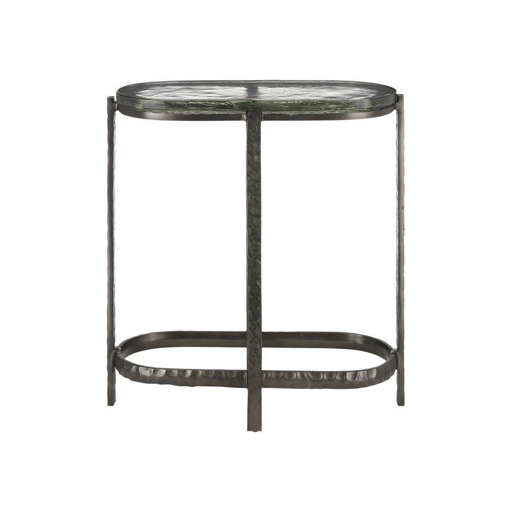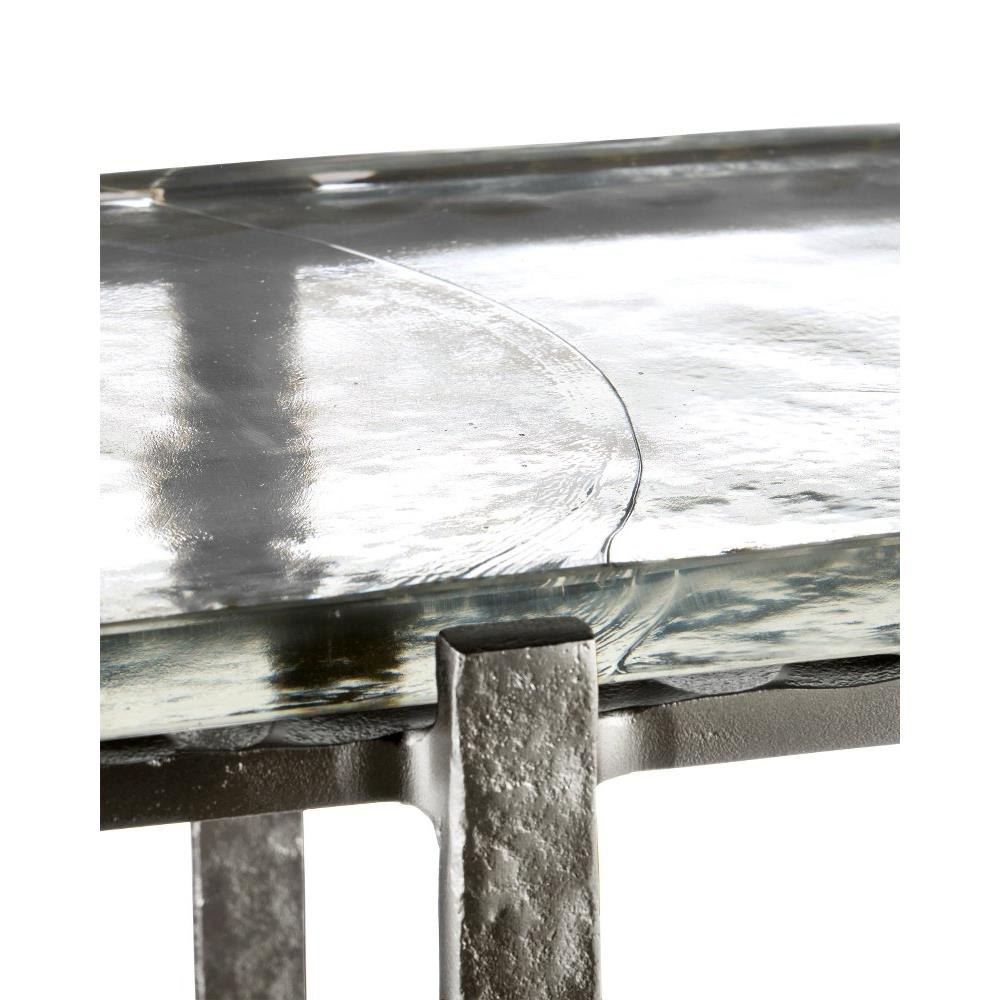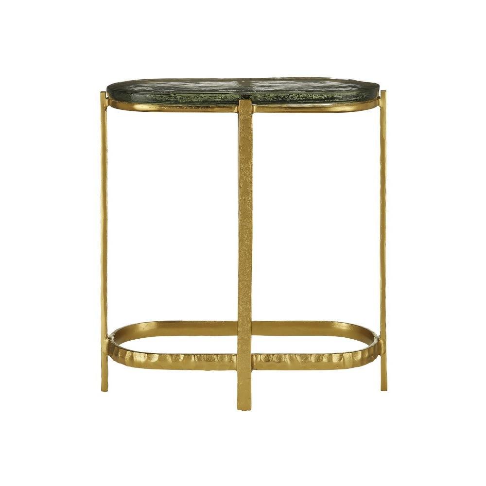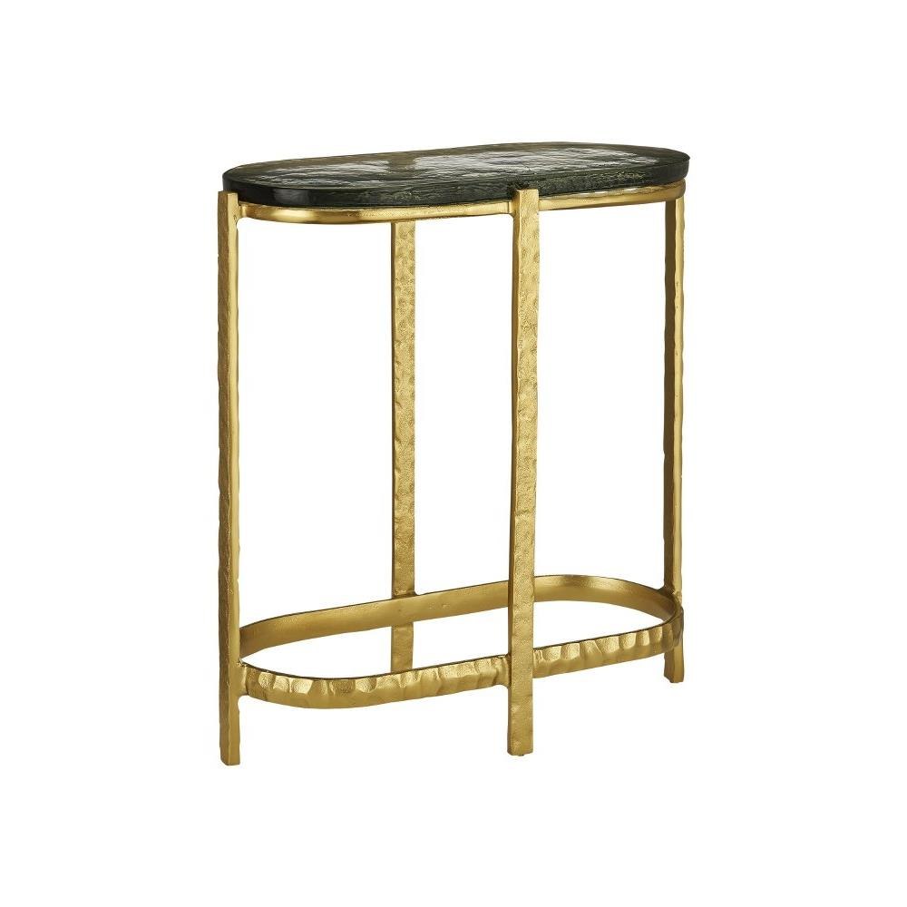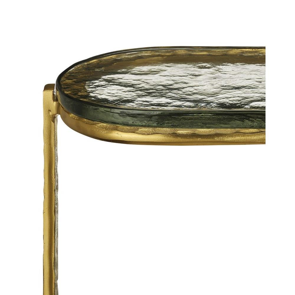 The point at which art and fine craftsmanship meet is where the Acea Gold Side Table resides. Made of cast aluminum poured into a hammered mold to create even greater texture, the gold side table is topped with a cast glass top that is equally textural and luminous. This table will be a piece of jewelry in a space.