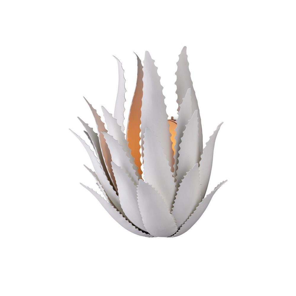 The Agave Wall Sconce was inspired by the flourishing plant of the same name, whose spiky, leathery fronds curl up from the ground. This sense of movement has been captured in the flowing spikes on this white wall sconce. “My love of the Agave plant, of which hundreds of varieties flourish in the peninsula, has inspired me for many years,” says the fixture’s designer Marjorie Skouras. Her passion for the Yucatan, the surroundings in which she lives and through which she translates the flora and fauna into dynamic products in her studio, shines in this wrought iron creation covered in a crisp gesso white finish.