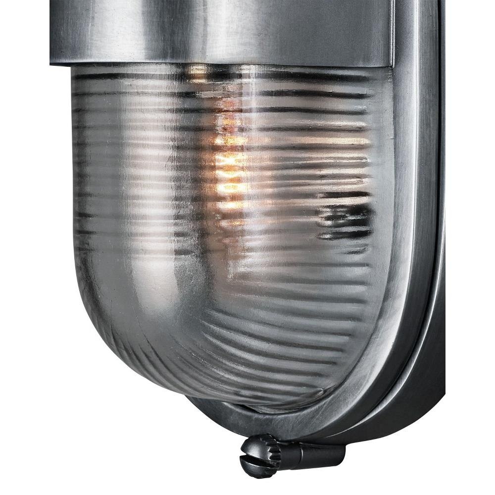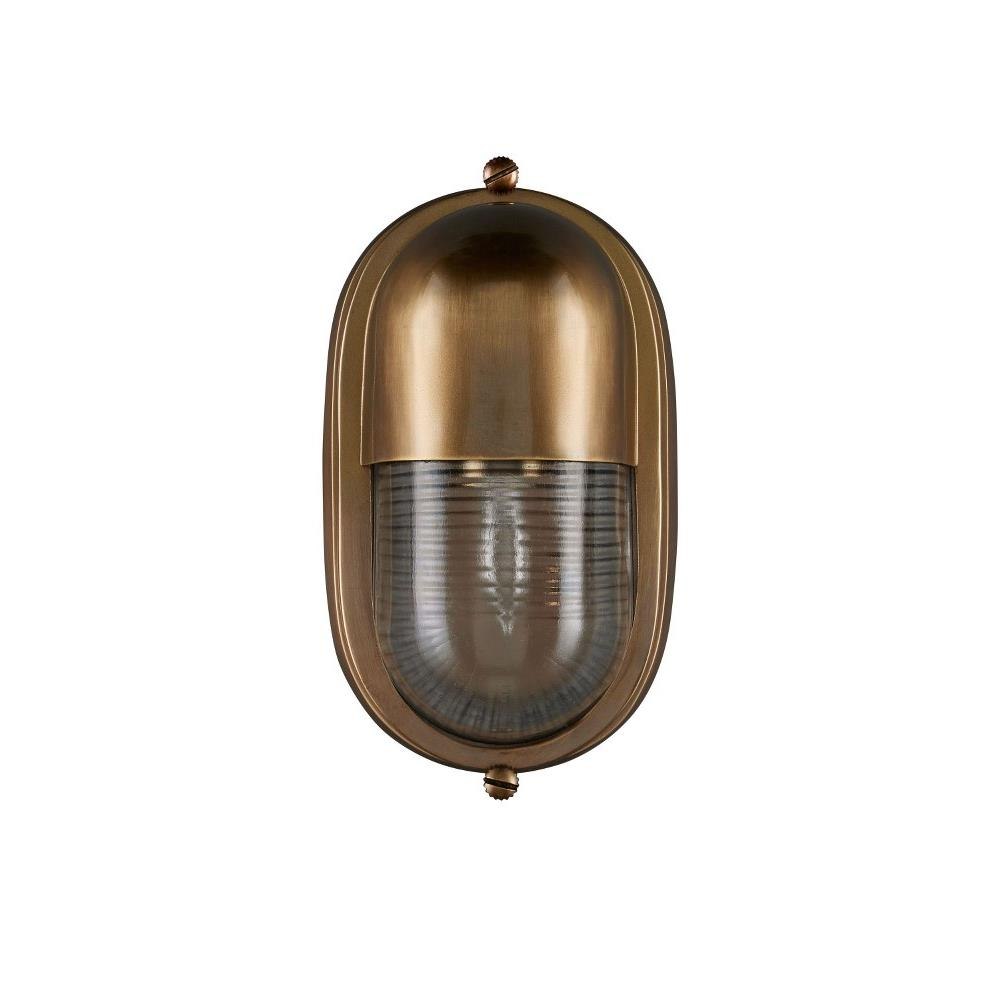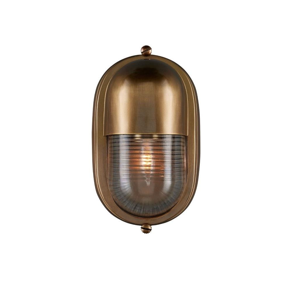 The Maritime Brass Outdoor Wall Sconce has its sea legs, so to speak, given it has the quintessential design attributes that have sailed the oceans for centuries. The antique brass body holds the ribbed glass shade in place. This gold outdoor sconce is a perfect choice for coastal environments given its stylistic notes harken to luxury yachts and schooners.