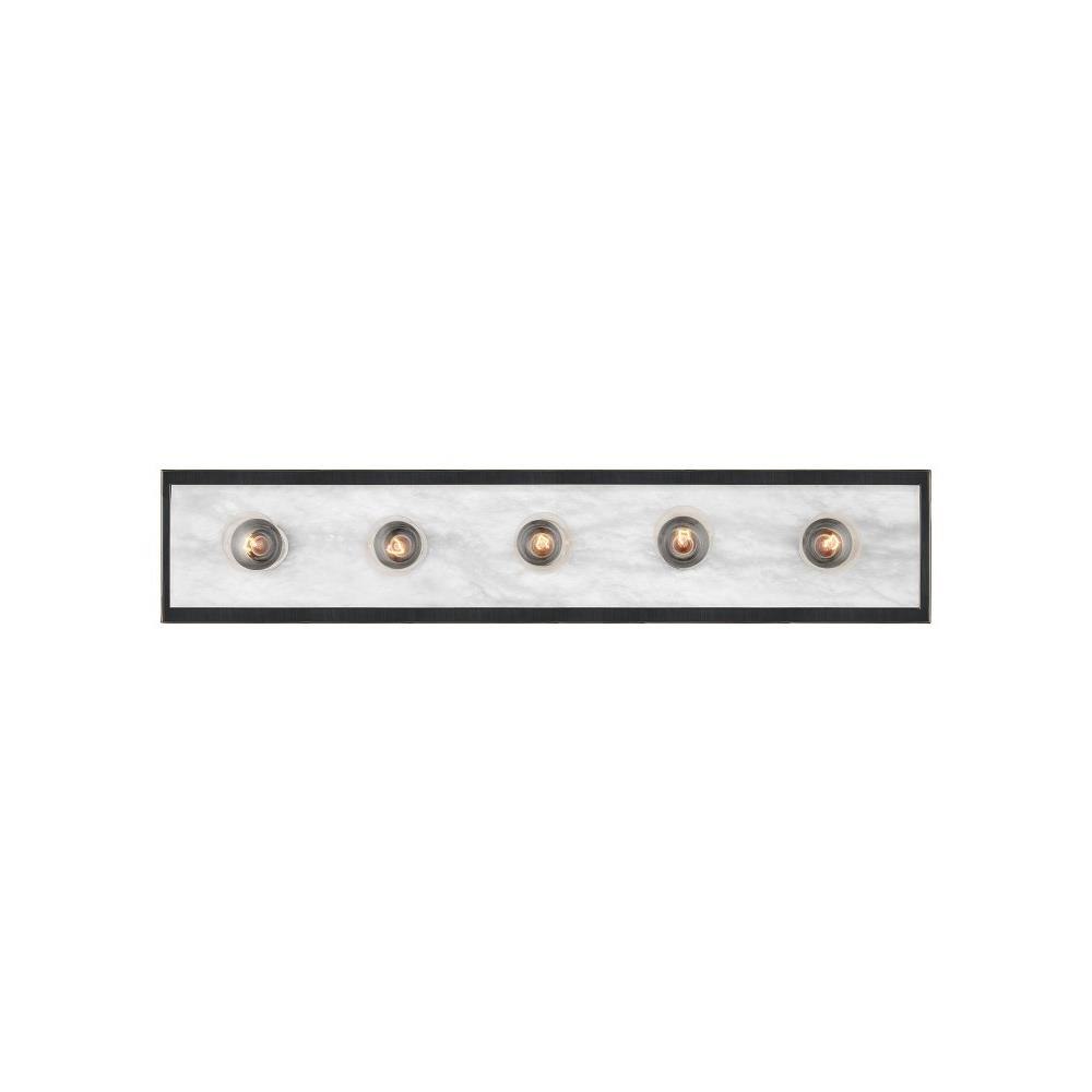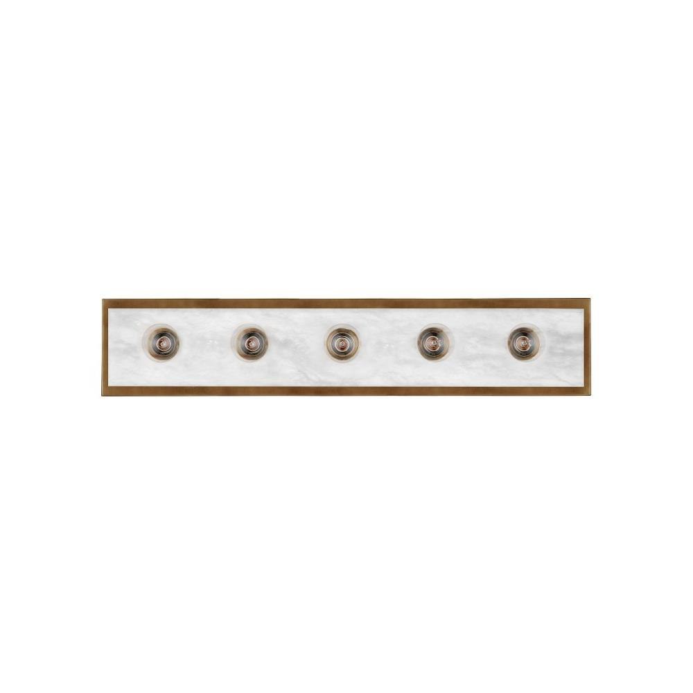 The Berdine Large Brass Bath Bar is a simple design that allows the natural alabaster to shine. Made of metal in an antique brass finish, the warmth of the gold contrasts the coolness of the stone to bring a subtle complexity to this design. It can be mounted vertically or horizontally, and the alabaster panel has a nice bevel to it where it meets the metal rim.