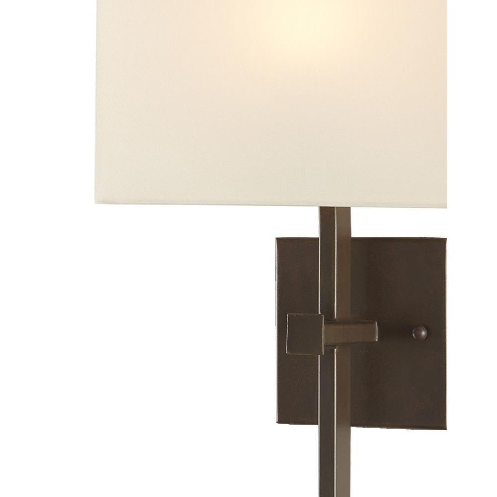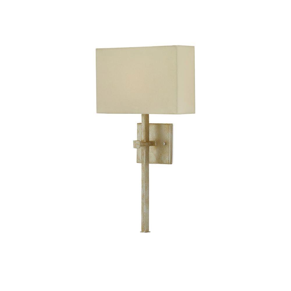 Another of our sconces that references vintage designs, our Ashdown Silver Wall Sconce has pared-down lines. The silver leaf finish is tonally in sync with the champagne silk shade. The sconce meets ADA requirements. We also offer this fixture in antique gold leaf and bronze gold finishes.