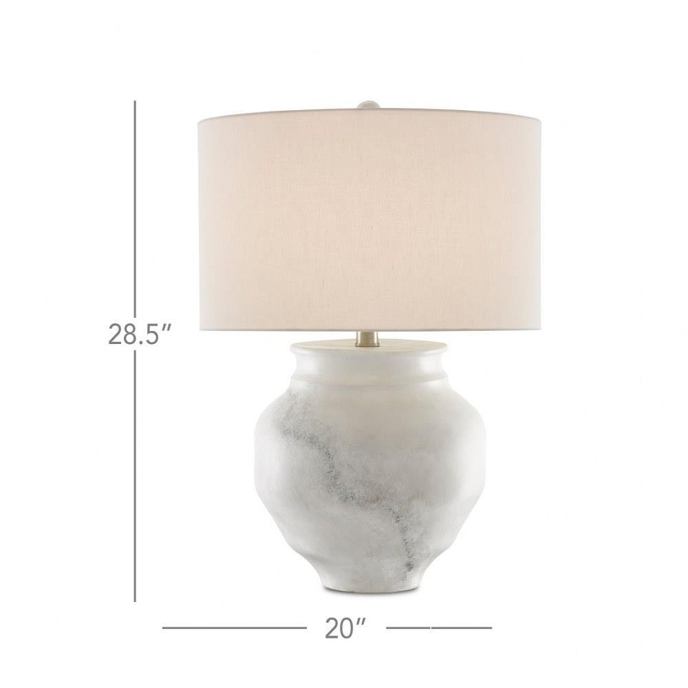 The Kalossi Table Lamp has a surface with a marble-like feel, though it is made of terracotta. The subtle patterning on the white lamp has been painstakingly applied by our artisans. The Kalossi is topped with an off-white shantung shade.