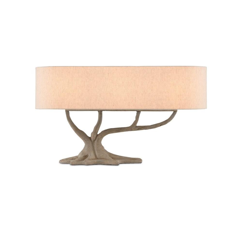 Made of concrete in the great faux bois tradition, the Cotswold Table Lamp is a soulful way to bring the beauty of nature indoors. Shaped like a Bonsai, the gray lamp has an elongated natural linen shade that is in perfect scale to the artful plant to which it is affixed. A design detail of note is how the artisan who created it truly captured the essence of the plant's fluidity.