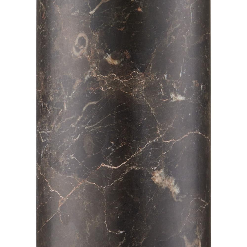 A tall column of swirling marble makes our Vespera Brown Table Lamp a clean-lined luminary with loads of personality. The beige and tan veining makes each of these coffee brown table lamps unique. The metal hardware in an antique brass finish draws out the darker tones in the lamp’s body, while the off-white shantung shade echoes the pale tones in the lustrous marble.
