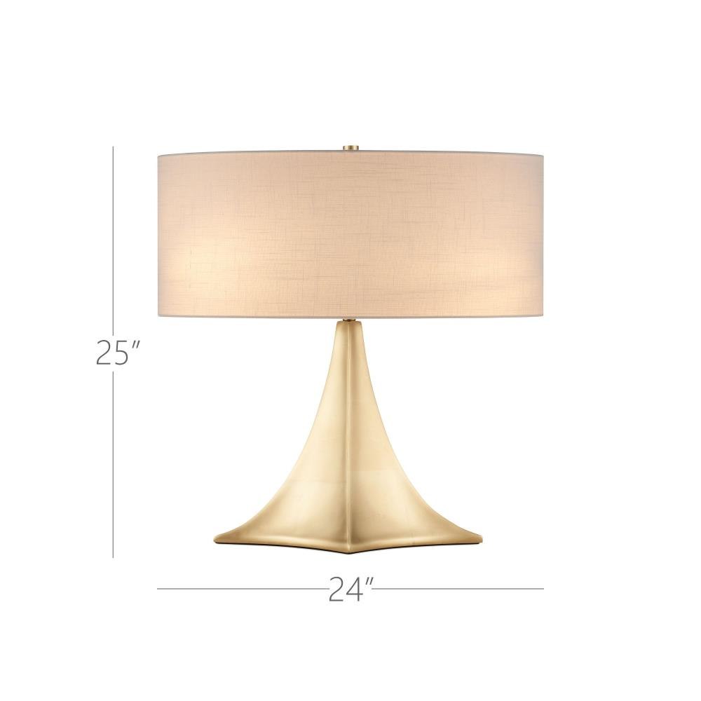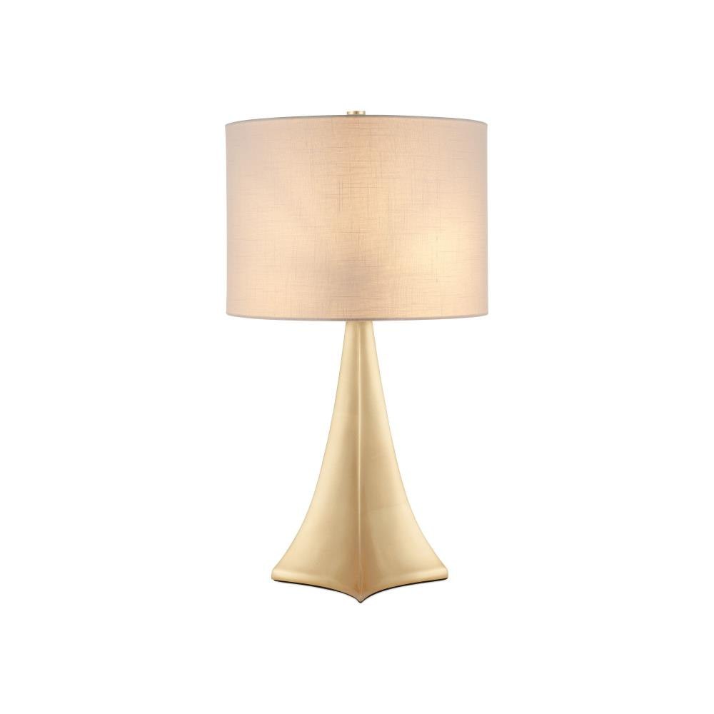 The Cassia Table Lamp features a striking silhouette finished in a brilliant gold metallic that adds warmth and radiance to its sculptural form. Made of composite, the base begins with a stretched diamond shape that flows upward through four concaves, narrowing gracefully just below the shade, which is oval. This makes the lamp a smart choice for desks, consoles, or buffets where space is limited but style matters.