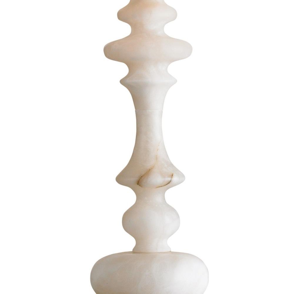 The shapely body of the Farrington Table Lamp is made of pure Alabaster in the tradition of turned wood that brought table legs and balusters into being. The white marble table lamp in the Lillian August Collection is topped with a cream silk shade that brings out the deeper tones in the Alabaster.