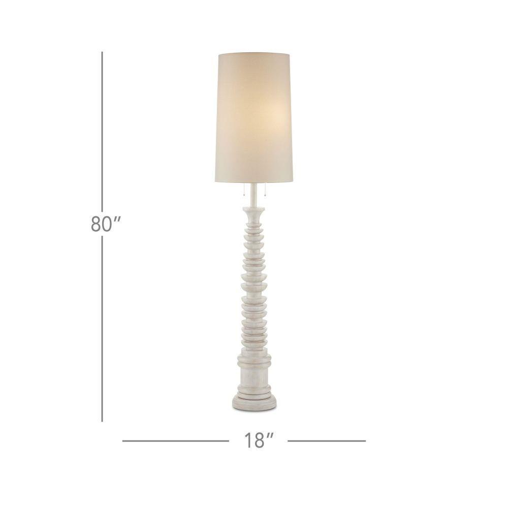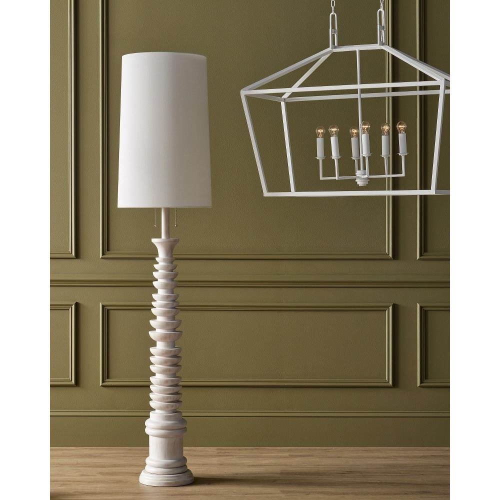 Rising like a temple spire on a mountainside in a faraway land, the Malayan White Floor Lamp has the elemental flair that gives master woodworkers bragging rights. The fluted body is made of rubber wood in a whitewash finish. The tall, thin linen shade placed atop this composition from the Phyllis Morris Collection makes it all the more commanding. The dual pull-chains are delicately sized to keep this design elegant.