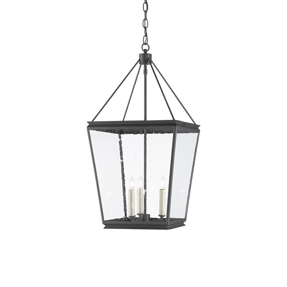 The Ellerman Lantern is a tried-and-true design that reflects the age-old lantern shape, which never goes out of style. Made of wrought iron in an old iron finish, the black lantern is fitted with seeded glass panels to complete the feel that this is a fixture rooted in Americana.
