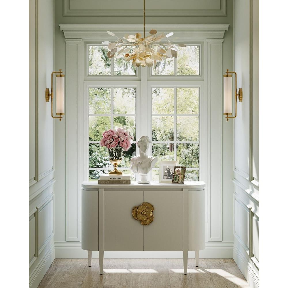 With a lyrical profile of fluttering discs that favor the leaves of its namesake plant, the Lunaria Small Chandelier is made of wrought iron in a contemporary silver leaf finish. The bulbs that are sprinkled amongst the flowing petals of metal reflect off the finish on this silver chandelier to increase the glow.
