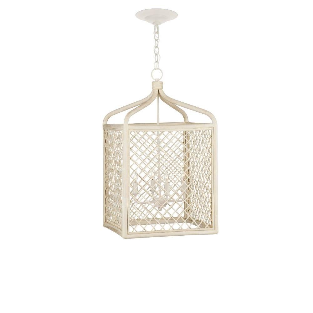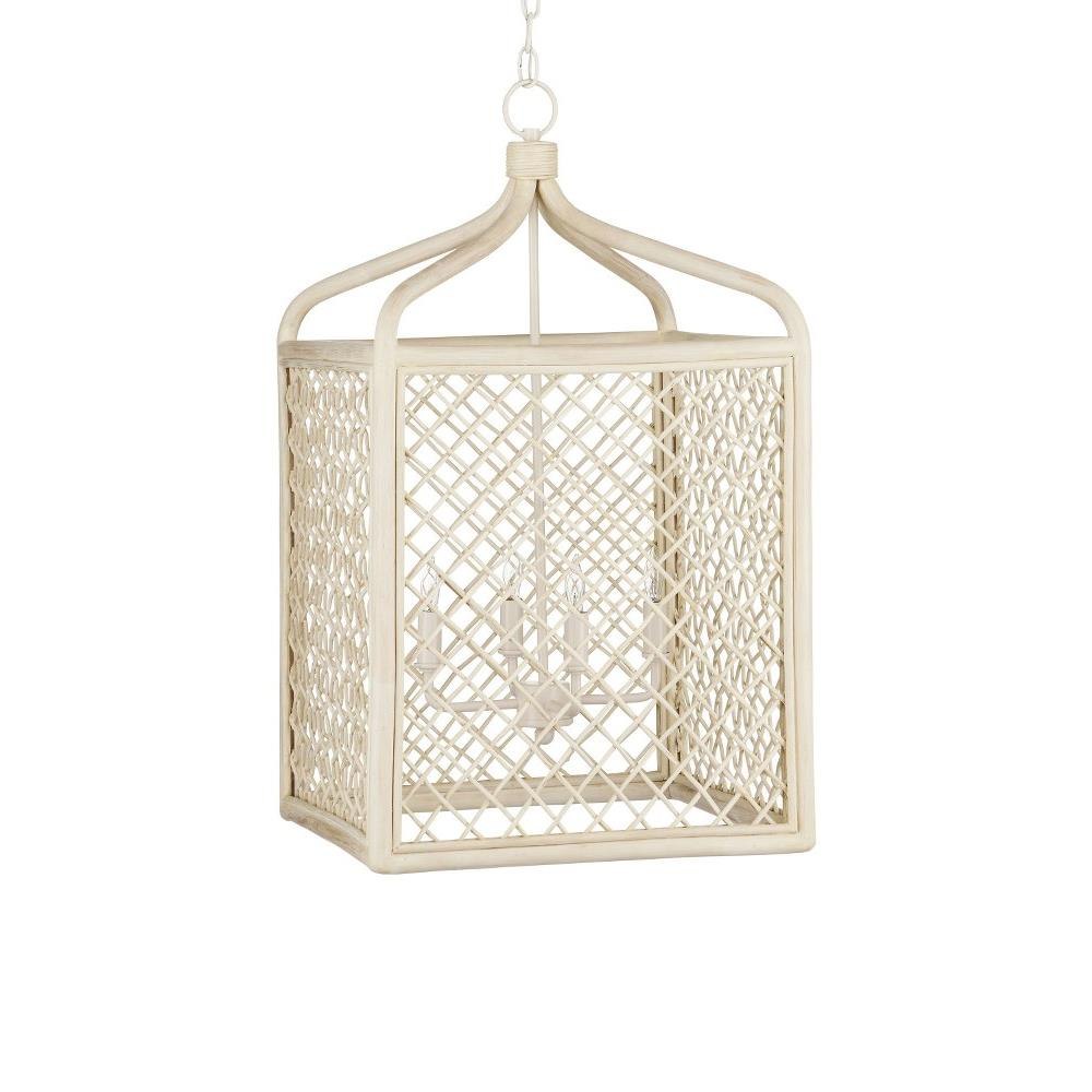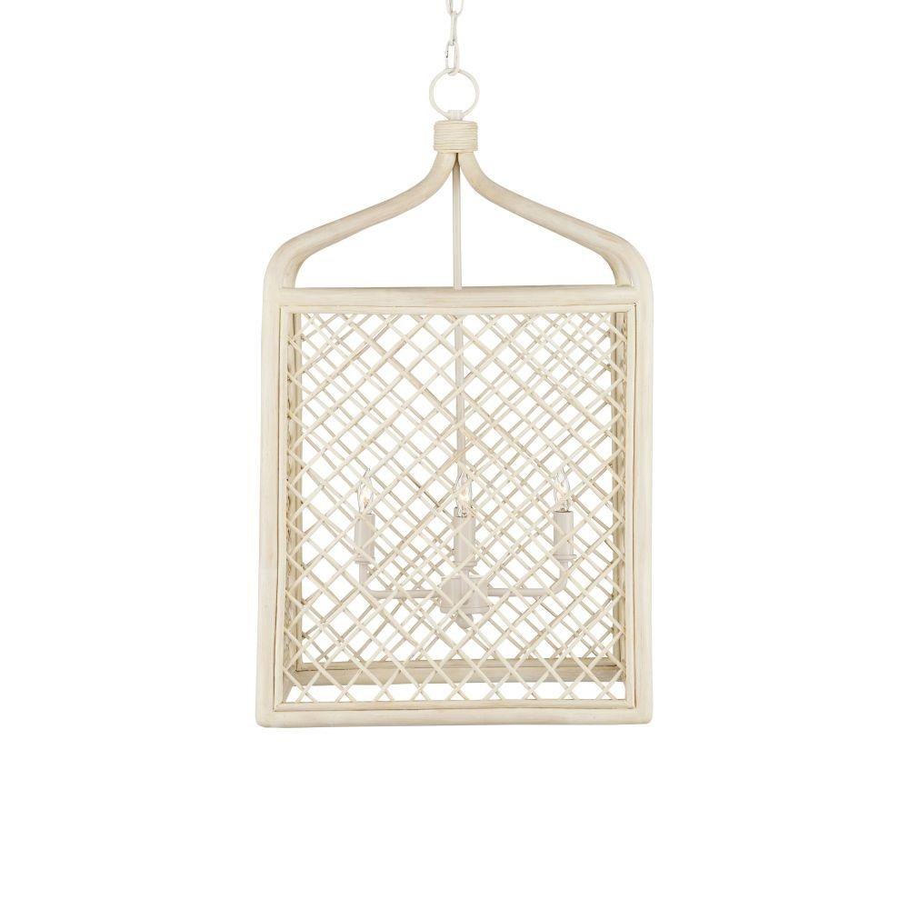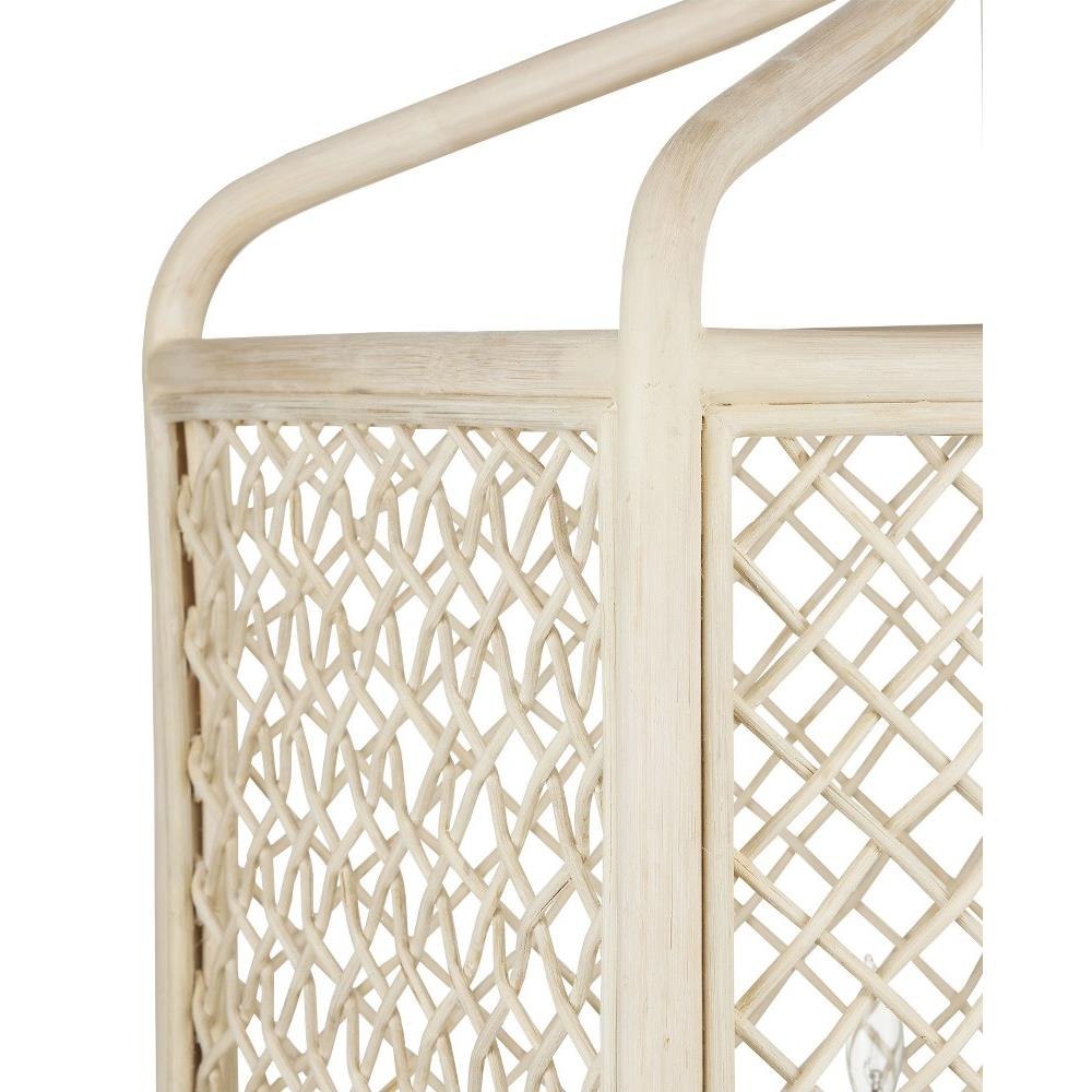 Achieving a traditional lantern shape entirely from wicker is a feat, one that was beautifully realized when artisans wove the Wanstead Lantern from the natural material. Both the thin and thick ribs intermingling to create the wicker lantern have been bleached to lighten the design. The vanilla finish on the hardware enhances the airiness of the lantern's profile.