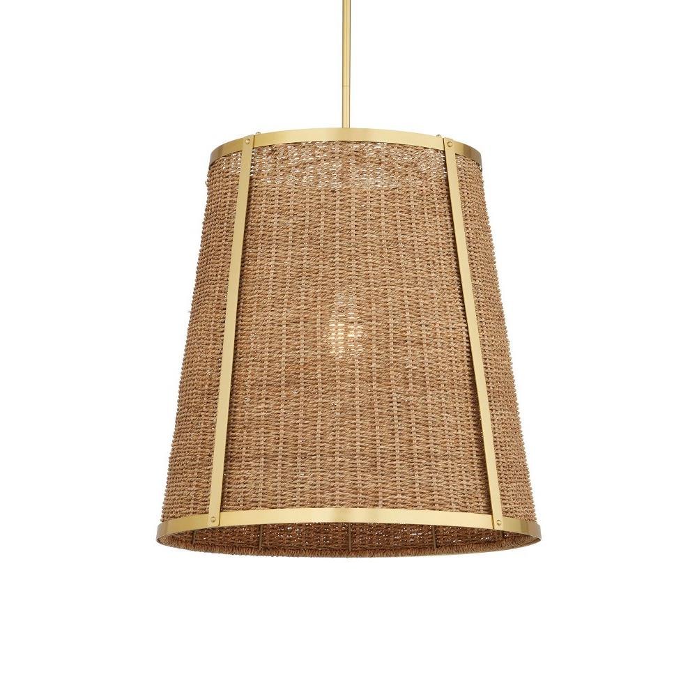 The Deauville Large Pendant was created by Suzanne Duin, who founded the Houston shop and design studio Maison Maison, and is known for a keen eye in sourcing authentic French antiques and home accessories from around the globe. Each piece in her line of woven light fixtures is handmade by artisans in Southeast Asia; the Deauville an example in natural seagrass and steel in a polished brass finish. This tailored pendant trimmed in gold brings both texture and French flair.