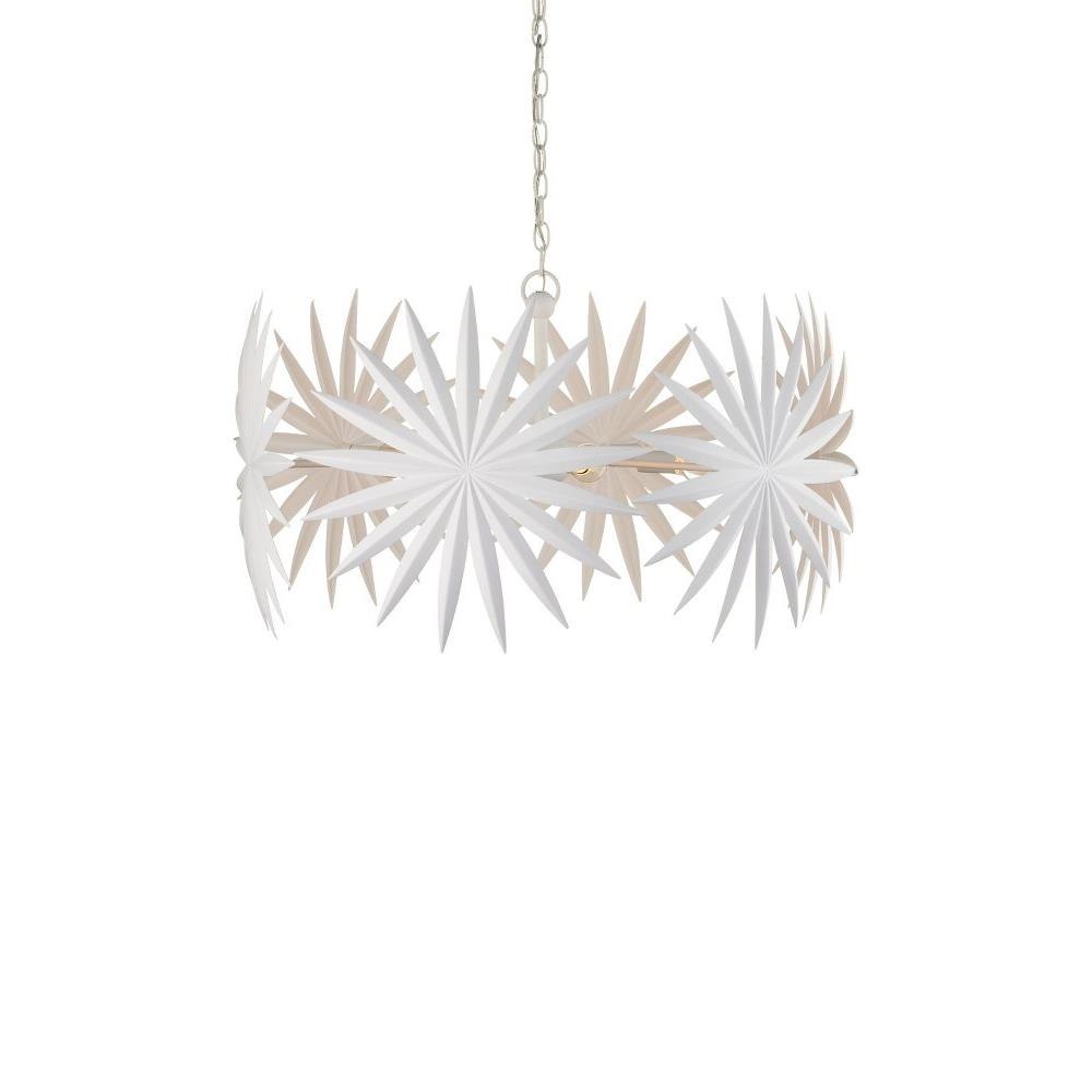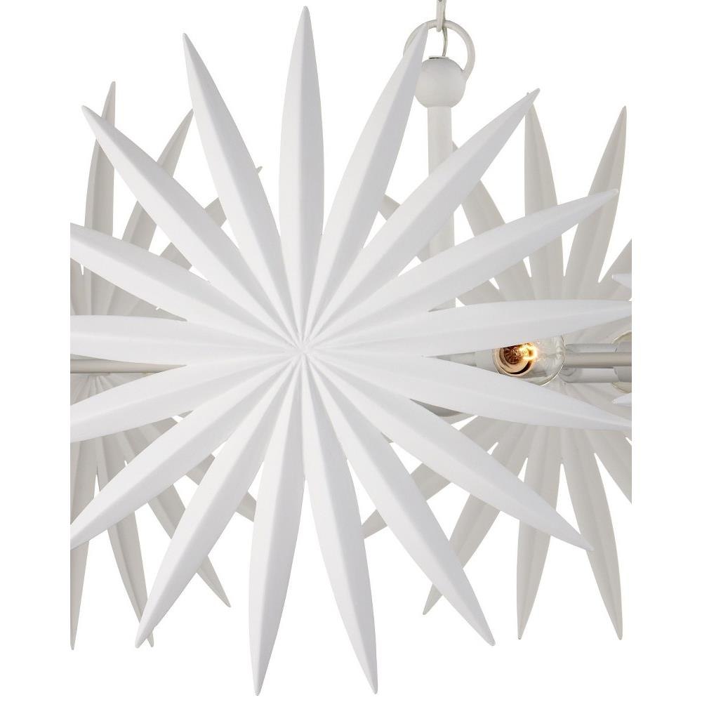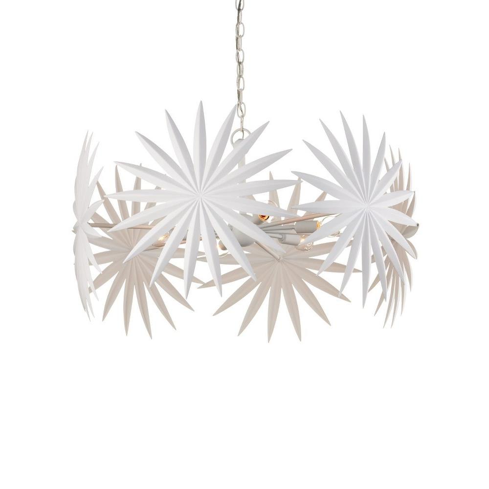The Bismarkia Small Chandelier was inspired by the noble Bismarkia palm, with its oversized fronds. Marjorie Skouras, who designed the chandelier, has stayed true to her love of nature for this creation. Her passion for the Yucatan, the surroundings in which she lives and through which she translates the flora and fauna into dynamic products in her studio, shines in this steel fixture covered in gesso white. The spiky ornamentations that splay around the bulbs bring immediate texture to the white chandelier. Adjustable from 25.5" to 93.5" with use of included chain/rod kit/cable. If your space calls for a longer drop, additional chain/rods/cable is available for purchase.