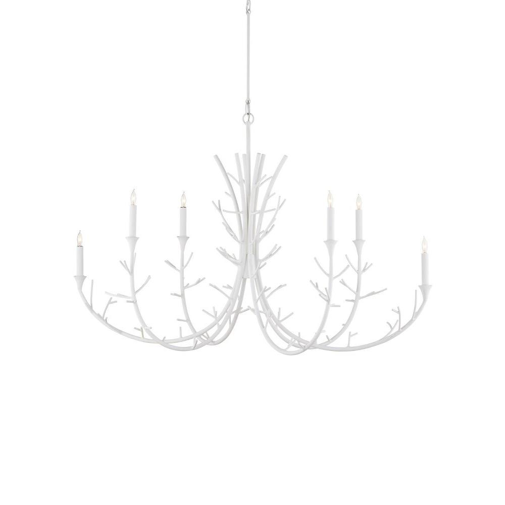 The Twiggy Oval Chandelier draws inspiration from snowy landscapes, with arcing limbs ornamented with spiky twigs. The design aims to capture the way snow collects on the leafless branches of trees, creating a visually striking and evocative piece. The gesso white wrought iron design is oblong, making it ideal for illuminating rectangular dining room tables or long kitchen islands. Adjustable from 47.5" to 112.5" with use of included chain/rod kit/cable. If your space calls for a longer drop, additional chain/rods/cable is available for purchase.