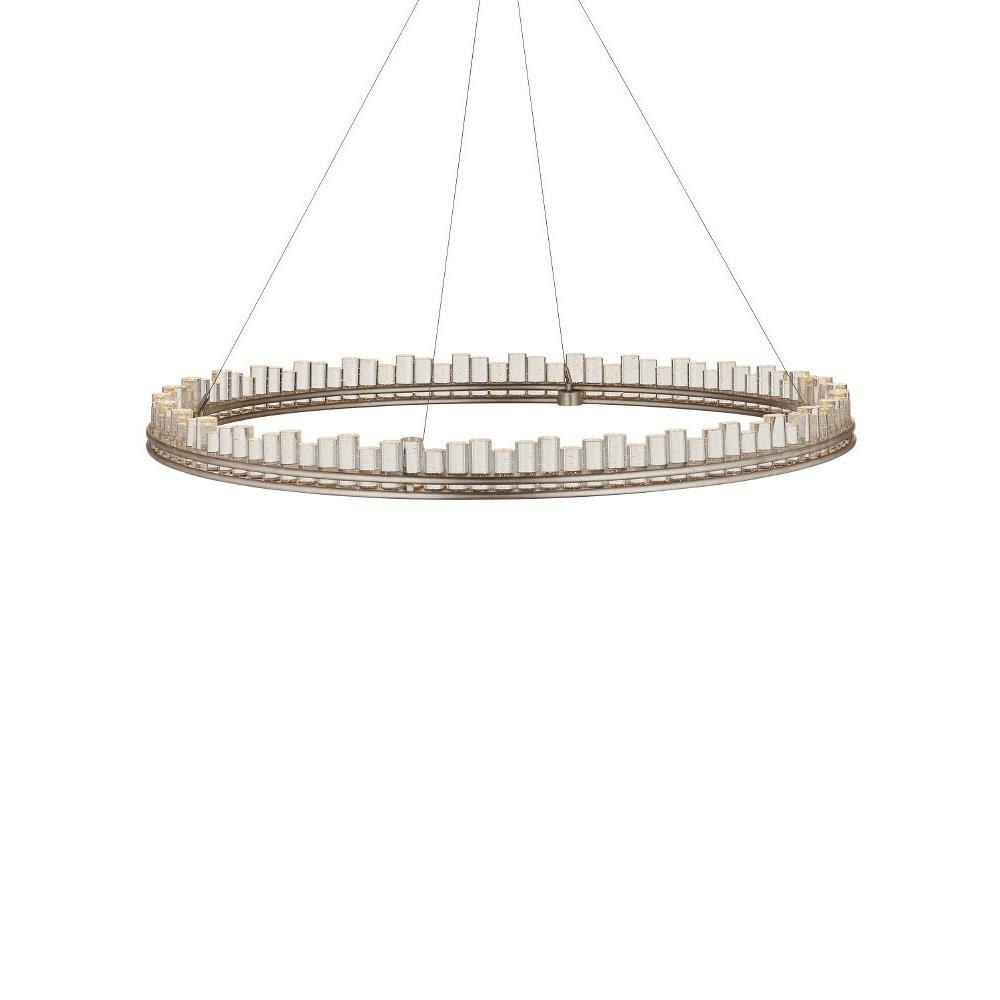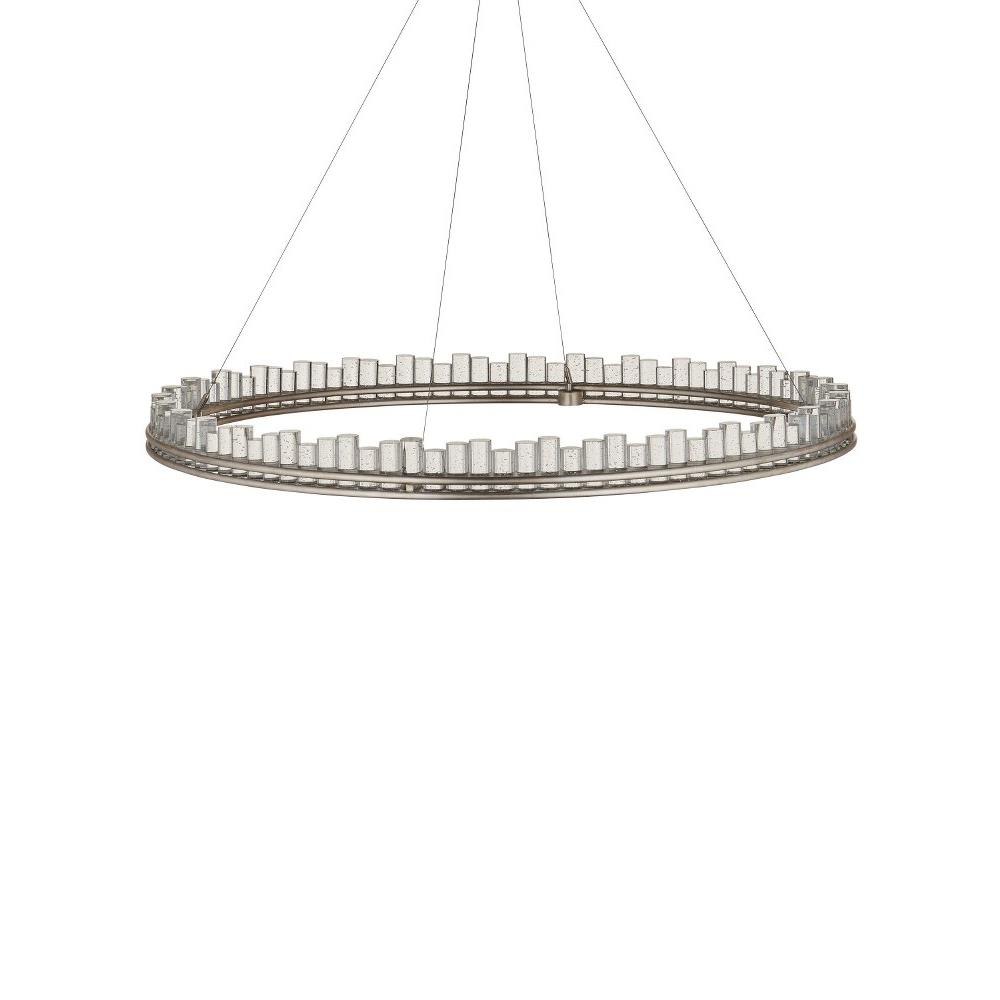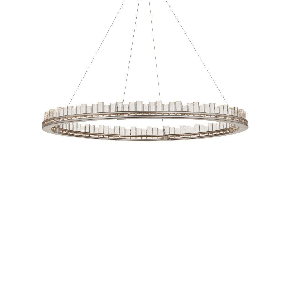 When envisioning the Pleiades Large Chandelier, the goal was to create drama with cylindrical pieces of seeded crystal fitted into a generously scaled silver leaf wrought iron ring. The open design of the ring is essential to enhance the sensational illumination, as it is fitted with an integrated LED strip. The light effervesces when it strikes the bubbles in the crystal rods, adding to the chandelier's allure. The Pleiades is dimmable. Adjustable from 32" to 148" with use of included chain/rod kit/cable. If your space calls for a longer drop, additional chain/rods/cable is available for purchase.