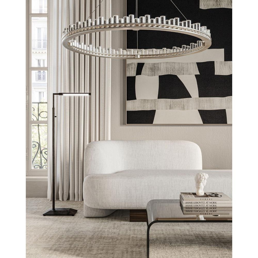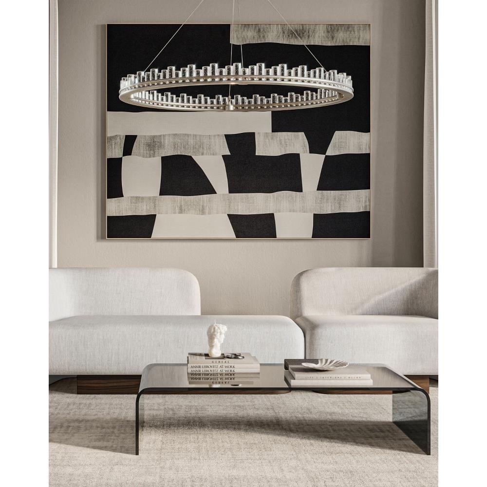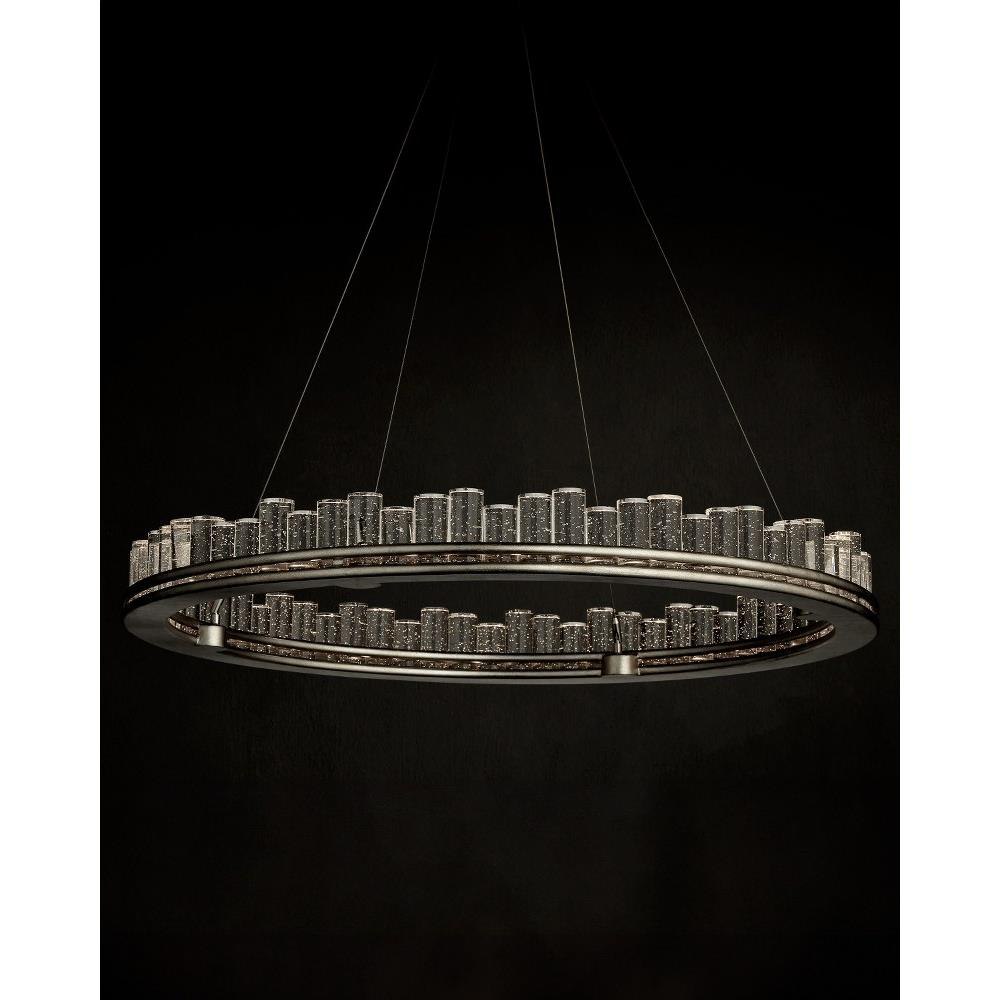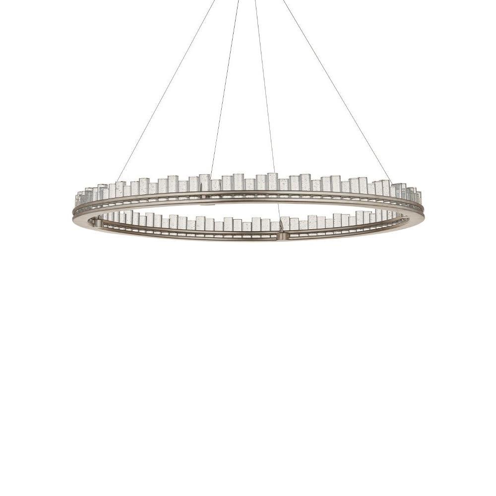 When envisioning the Pleiades Large Chandelier, the goal was to create drama with cylindrical pieces of seeded crystal fitted into a generously scaled silver leaf wrought iron ring. The open design of the ring is essential to enhance the sensational illumination, as it is fitted with an integrated LED strip. The light effervesces when it strikes the bubbles in the crystal rods, adding to the chandelier's allure. The Pleiades is dimmable. Adjustable from 32" to 148" with use of included chain/rod kit/cable. If your space calls for a longer drop, additional chain/rods/cable is available for purchase.