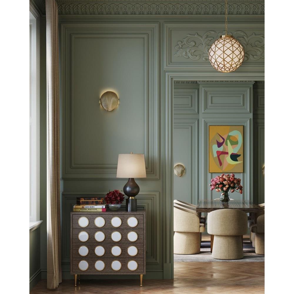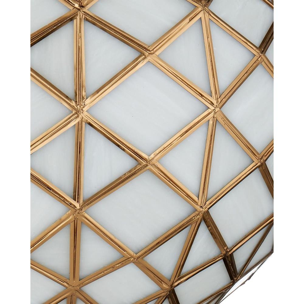 The name of he Polyhedron Small Pendant pays homage to its triangular panes of white glass pieced together between antique brass delineations. Though the glass looks uniform when the illumination warms it, there are subtle drifts of milkier white in some spots that others, which adds a bit of texture to this geometric design. Adjustable from 24.5" to 92.5" with use of included chain/rod kit/cable. If your space calls for a longer drop, additional chain/rods/cable is available for purchase.