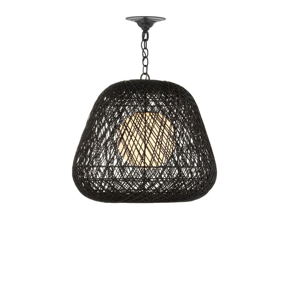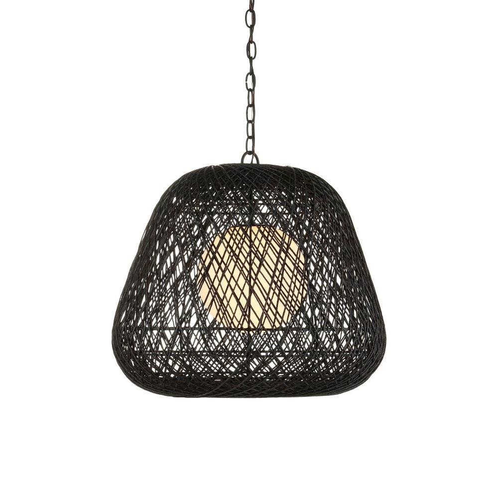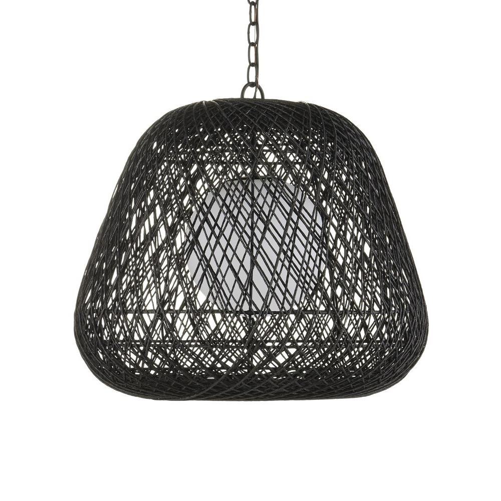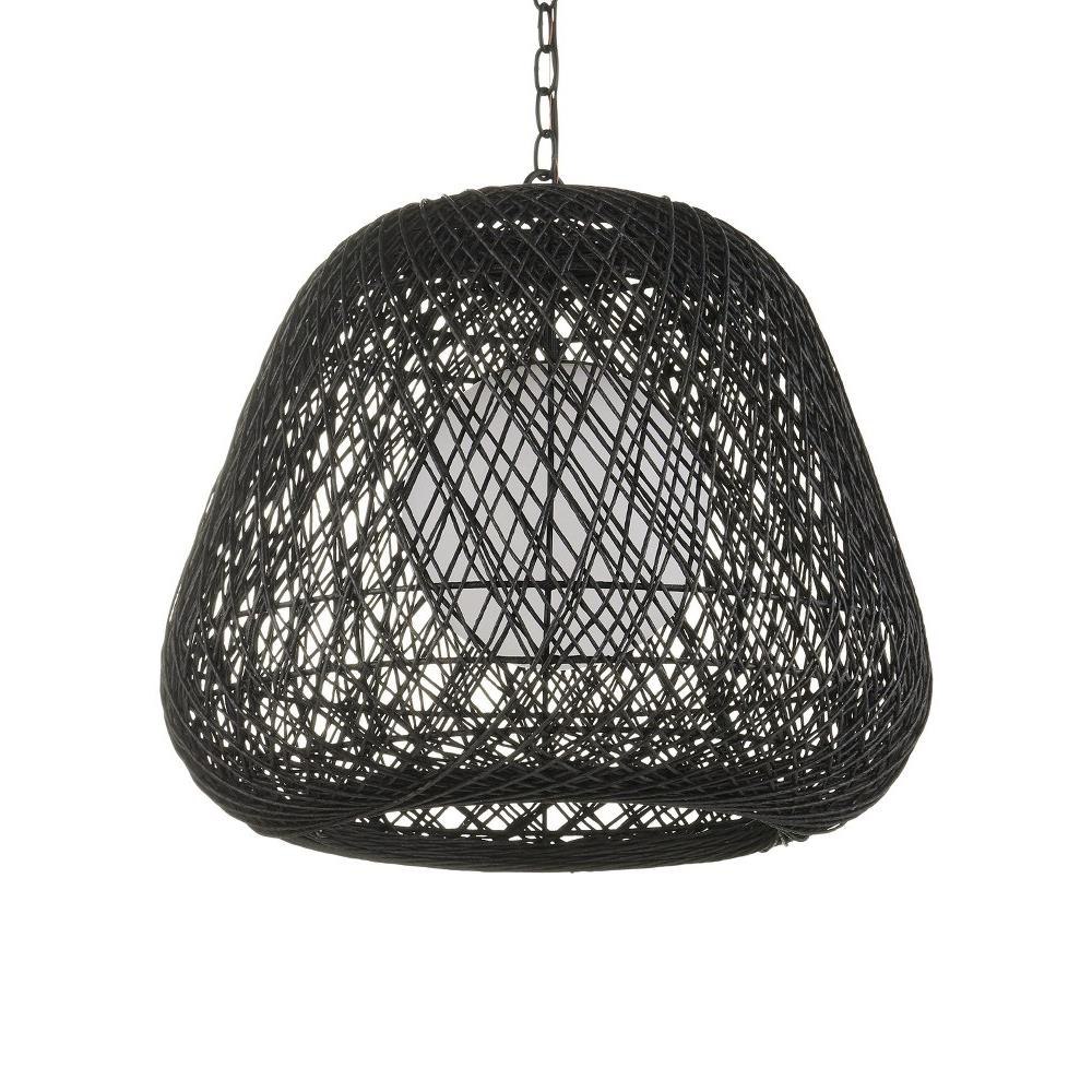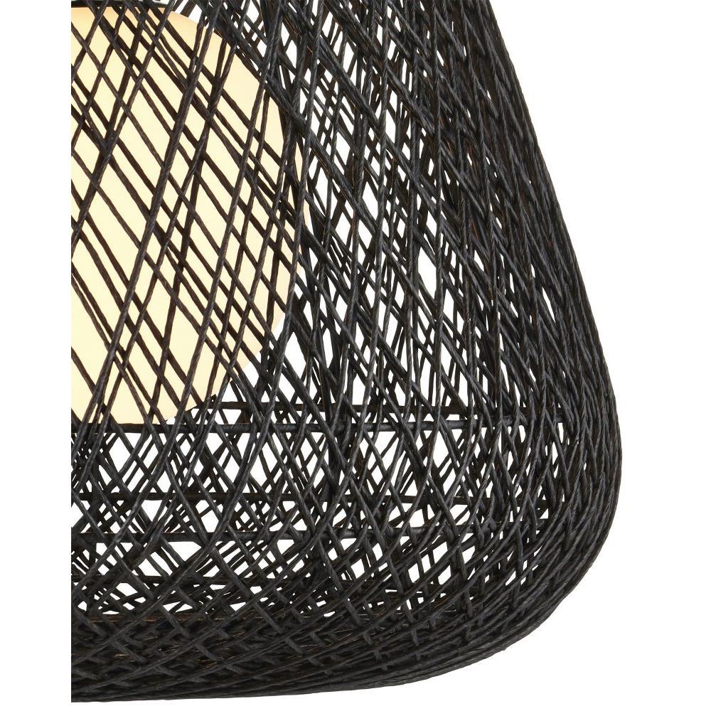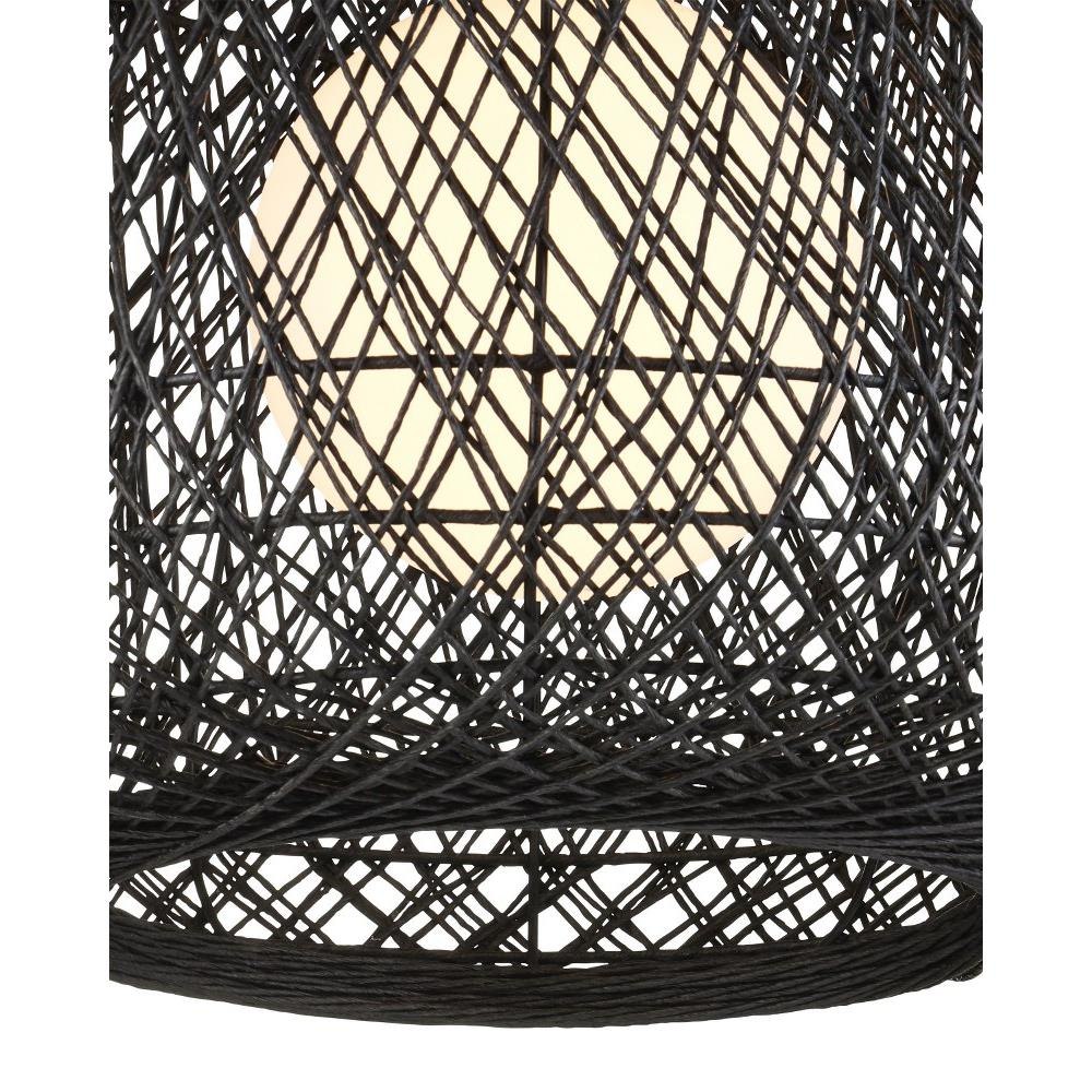 With a profile that looks like the moon nestled in a cocoon, the Osbert Black Pendant is made when black Kraft paper twine is looped around graduating sizes of thin rings. The artful way the string is layered takes great effort, and the darkness of the string complements the satin black finish on the metal. The mysterious feel of the white glass globe that sits within it is a powerful design detail. Adjustable from 28.75" to 99.5" with use of included chain/rod kit/cable. If your space calls for a longer drop, additional chain/rods/cable is available for purchase.